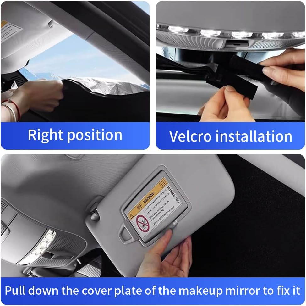 ✅[حماية السيارة وحماية الخصوصية] سواء في الصيف أو الشتاء، يمكنها حجب الشمس خارج الزجاج الأمامي، وتمنع بشكل فعال حروق الشمس على لوحة الأدوات، وتأخير شيخوخة تشقق التحكم. يمكن أن يمنع الغرباء من النظر داخل السيارة، مما يمنحك مساحة سيارة أكثر خصوصية ودون إزعاج.