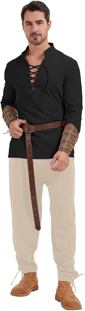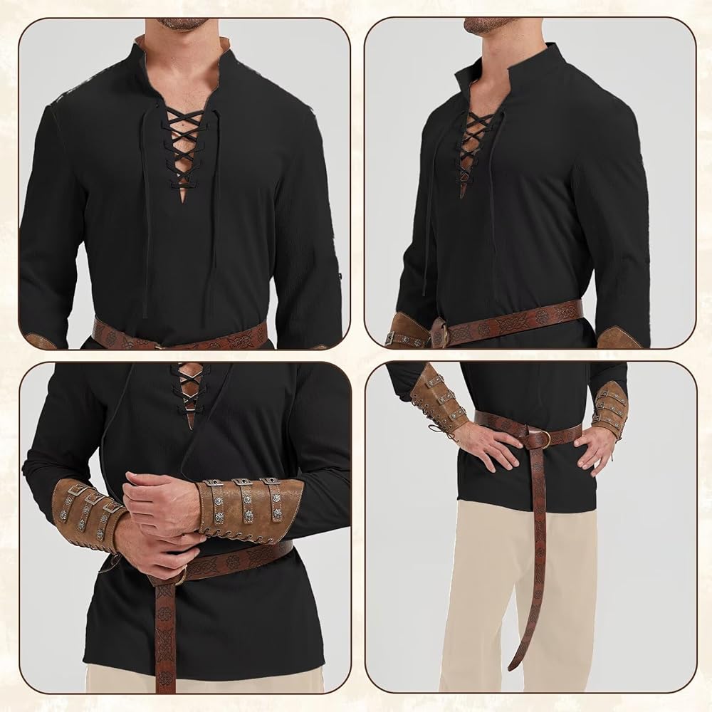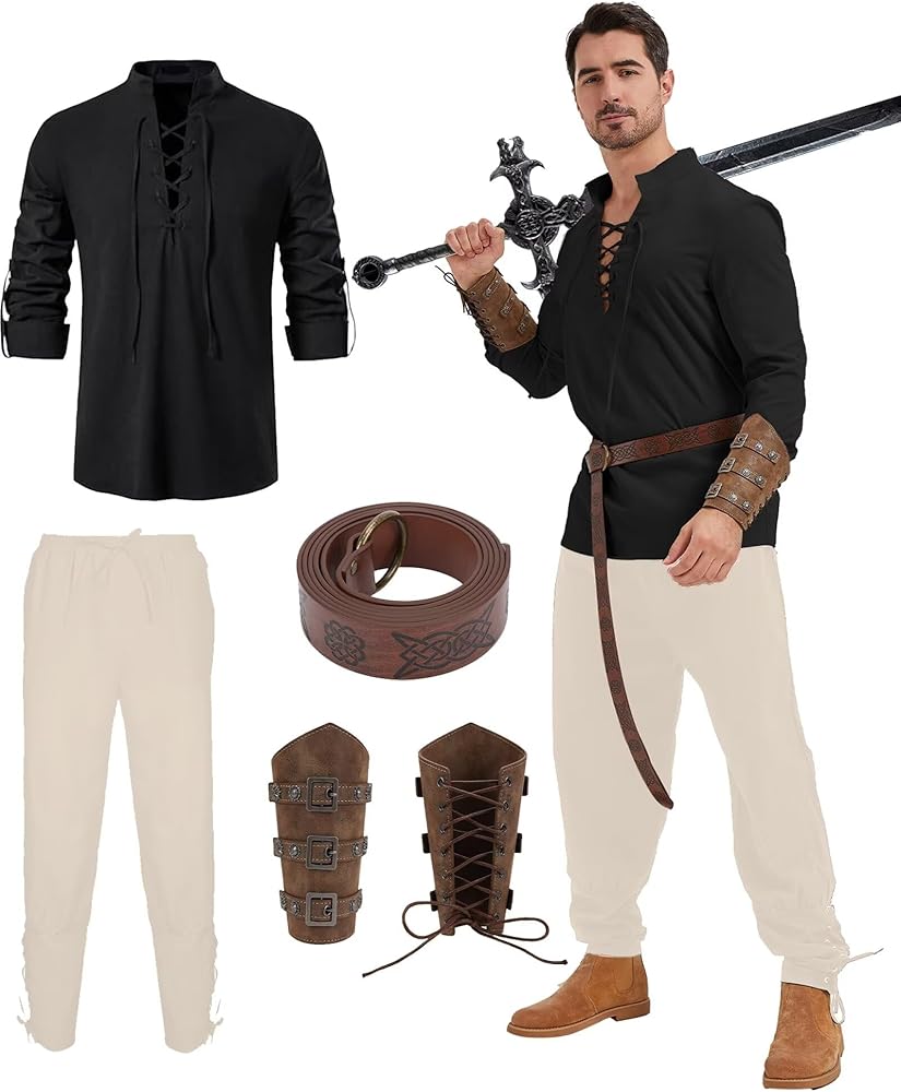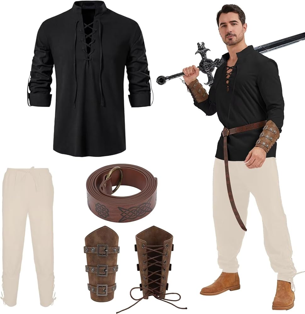 زي العصور الوسطى: انغمس في أسلوب القرصان والفارس الكلاسيكي مع هذه الأزياء الرجعية المستوحاة من الفايكنج. لا غنى عنه للحفلات ذات الطابع الخاص أو ببساطة للاستمتاع بالرومانسية الذكورية.