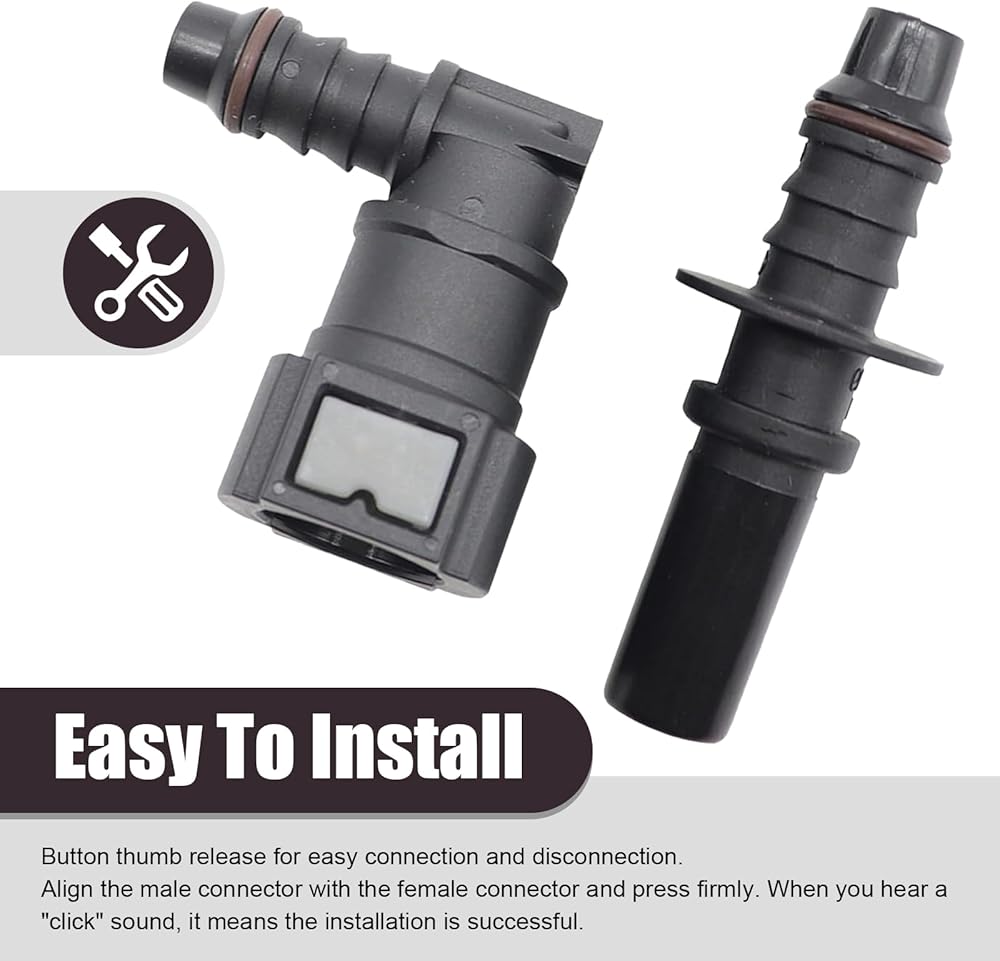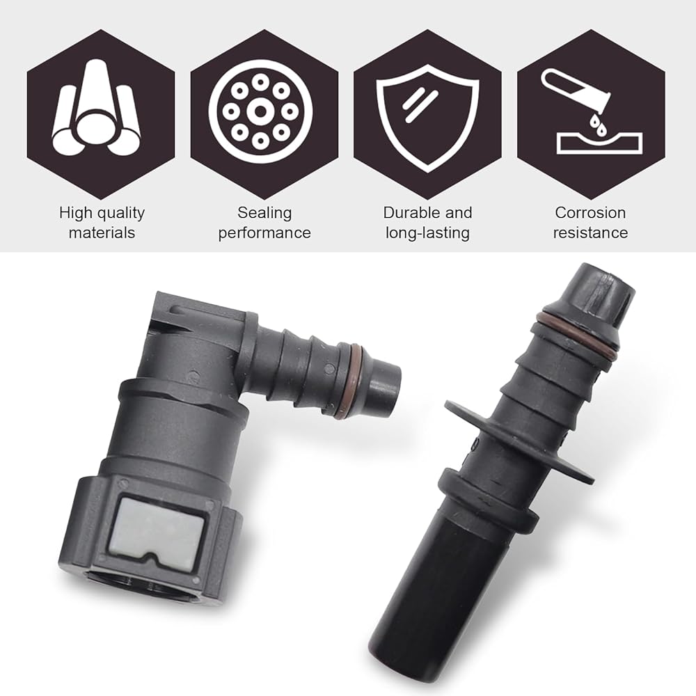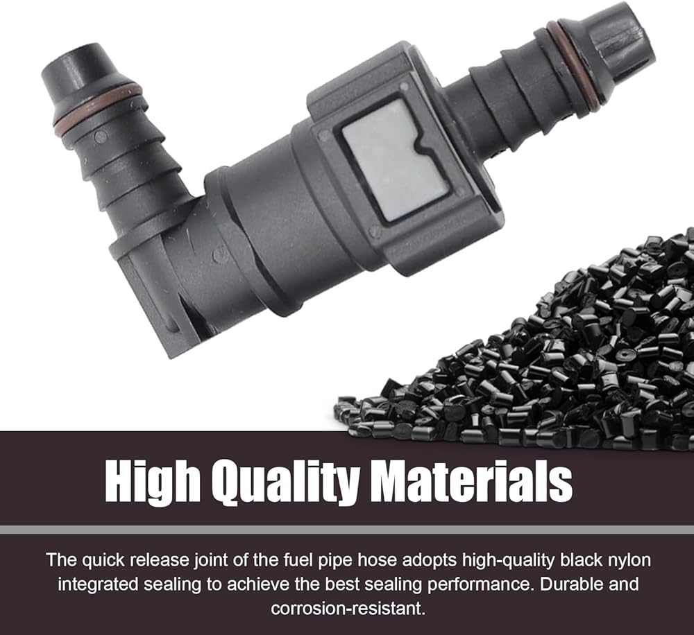 Box Contents: You will receive a 9.49-ID6 elbow-through automobile fuel pipe quick connector and an adapter male connector. The product has a smooth surface without burrs and fine craftsmanship. The product is small and portable, convenient for you to use at any time.