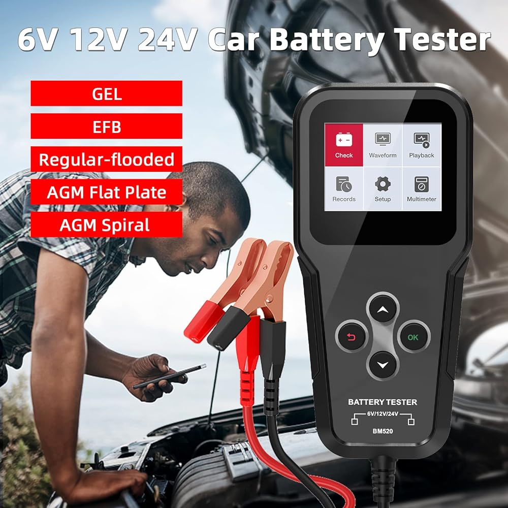 جهاز اختبار بطارية السيارة التلقائي المستخدم على نطاق واسع: يمكن لجهاز اختبار بطارية BM520 اختبار جميع بطاريات السيارات 6 فولت 12 فولت 24 فولت 100-2000 CCA، بما في ذلك البطاريات المغمورة العادية، أو اللوحة المسطحة AGM، أو بطاريات AGM الحلزونية، أو البطاريات الهلامية. توفير تحليل شامل لحالة البطارية، وشاشة LED تعرض حالة البطارية بوضوح. علاوة على ذلك، يدعم جهاز اختبار البطارية BM520 اختبار نظام التدوير والشحن وكذلك اختبار المولد وبدء التشغيل، كل ذلك في جهاز اختبار بطارية سيارة واحد!