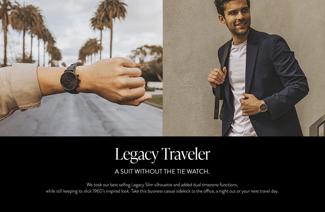 البدلة: تجمع ساعة رجال الأعمال غير الرسمية هذه بين الصورة الظلية Legacy Slim الأكثر مبيعًا لدينا والأسلوب الأنيق المستوحى من الستينيات. احصل على هذه الساعة الأنيقة باللون الذهبي أو الفضي أو الأسود وارتدِ أي طراز.