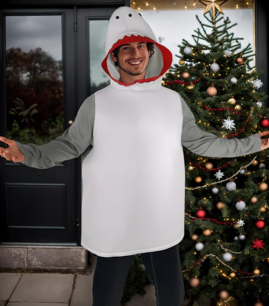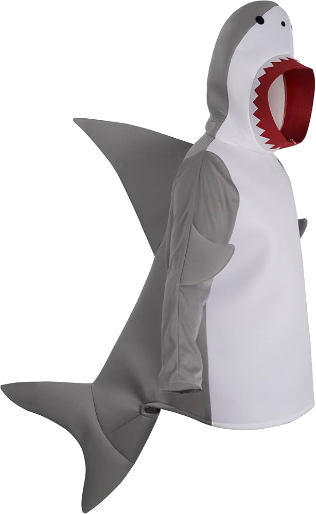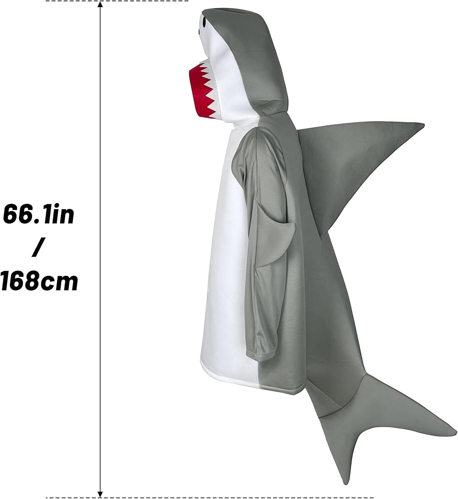 بدلة هوميلكس للحيوانات للبالغين من قطعة واحدة للجنسين للبالغين والنساء في الهالوين مع أربطة شعر على شكل حيوانات - سمكة القرش