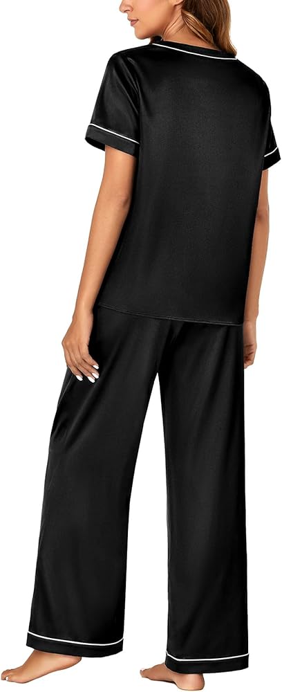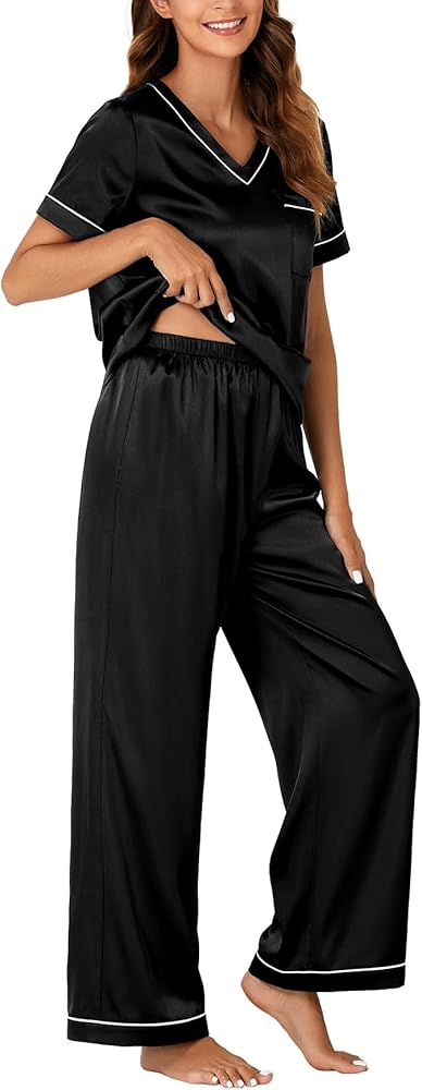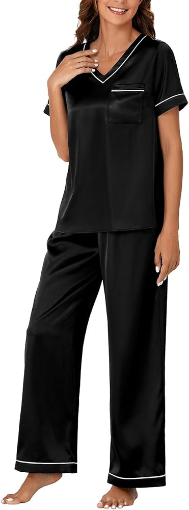 • مجموعة البيجامات المتطابقة من الساتان مناسبة للاسترخاء والنوم، وحفلات البيجامة، وغرفة المعيشة، وغرفة النوم، والفندق، والعطلات، والسفر، وملابس النوم اليومية. كما أنها هدية مثالية لصديقتك وأختك وزوجتك!