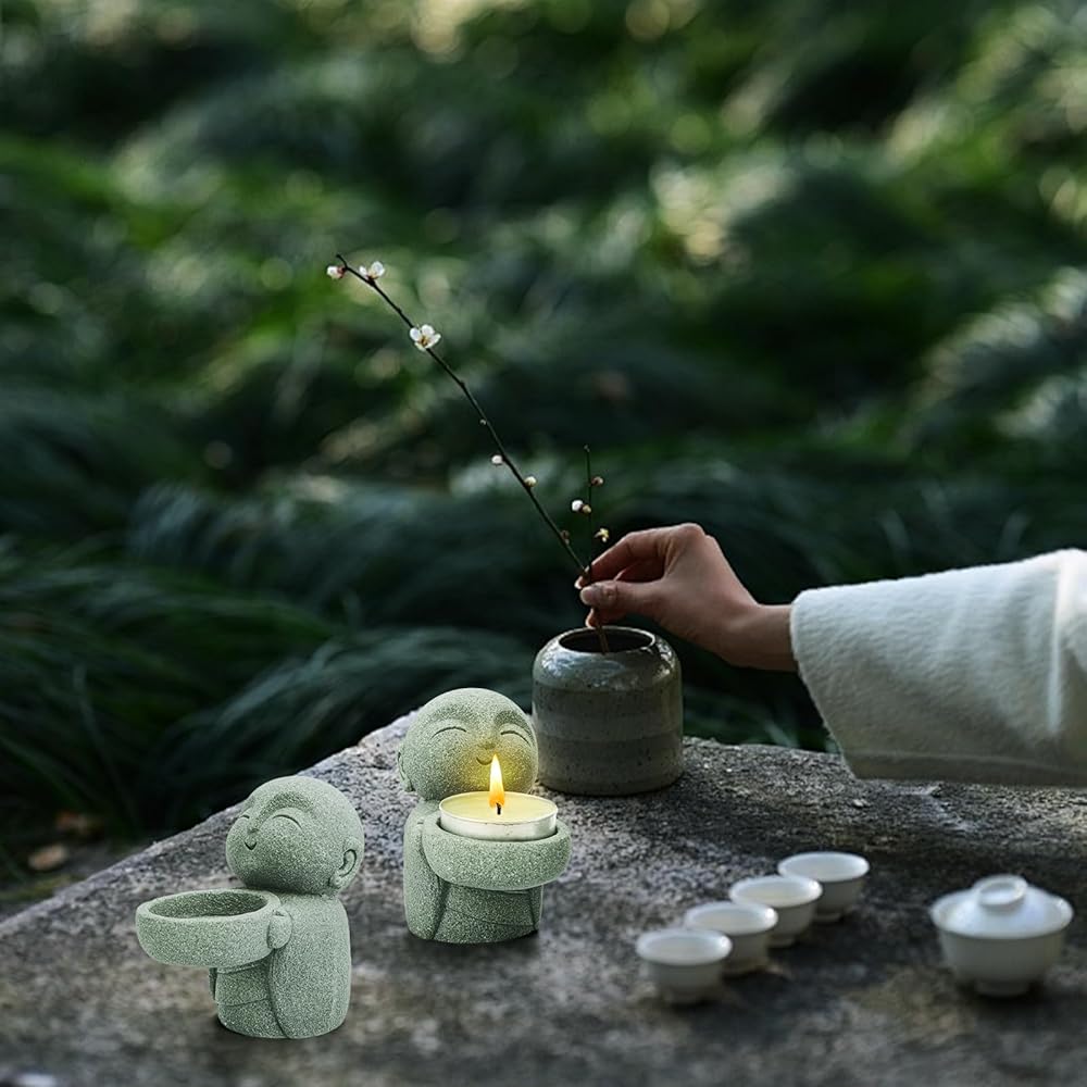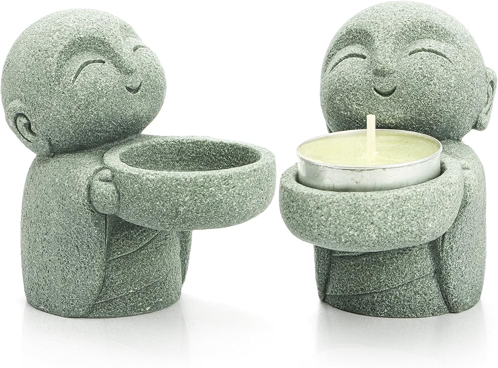 Multipurpose: The mini buddha figurine is an artistic collectible, as well as a candle holder or functional tea light holder. Adorable monk figure can project a calmness and serene atmosphere in your house or office.