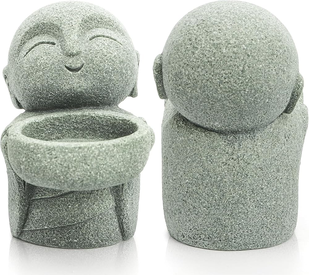 Nicunom 2 حزمة تماثيل بوذا من الحجر الرملي، تمثال جيزو الراهب زن الراهب بوذا تمثال الصلاة منحوتات زخرفة للثروة حظا سعيدا فنغ شوي المنزل مكتب سيارة حديقة في الهواء الطلق حوض السمك الديكور