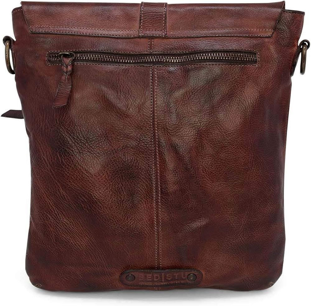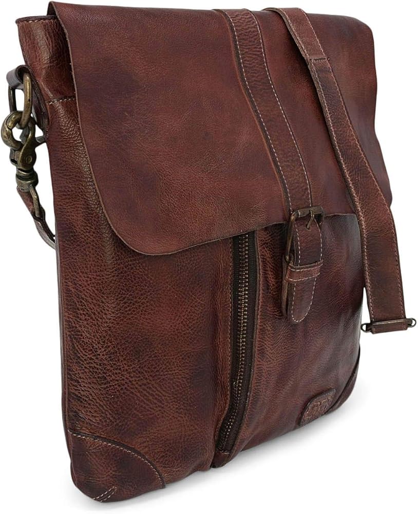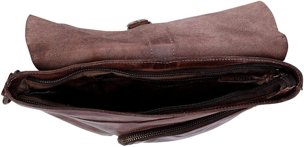 *Tanned leather material with vertical zip accent *Foldover flap with main compartment zip entry *Exterior back zip pocket *Interior features 1 zip pocket, 2 slip pockets *Detachable, adjustable crossbody strap *12"Lx1.5"Dx13"H