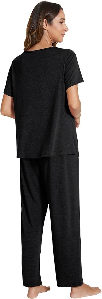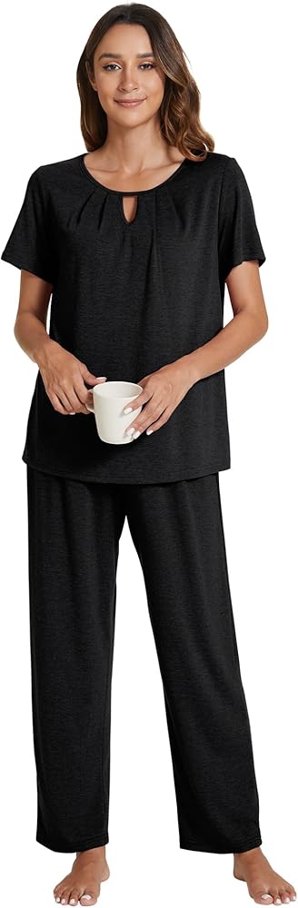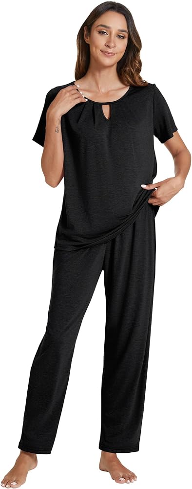 • الميزات: طقم بيجامة مكون من قطعتين يأتي مع بيجامة كاجوال وبنطلون طويل متناسق. يتميز قميص البيجامة الناعم بياقة دائرية، وأكمام قصيرة، وجذاب. تتميز سراويل النوم الطويلة بمقاس مريح، وحزام خصر مطاطي مريح.