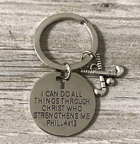 سلسلة مفاتيح ساحرة للهوكي الميداني، سلسلة مفاتيح ساحرة للإيمان المسيحي، أستطيع أن أفعل كل شيء من خلال المسيح الذي يقويني فيل. 4:13 مجوهرات الكتاب المقدس، هدايا الهوكي الميداني للنساء والفتيات