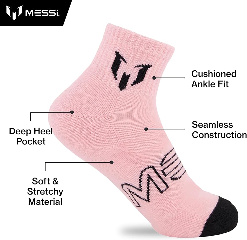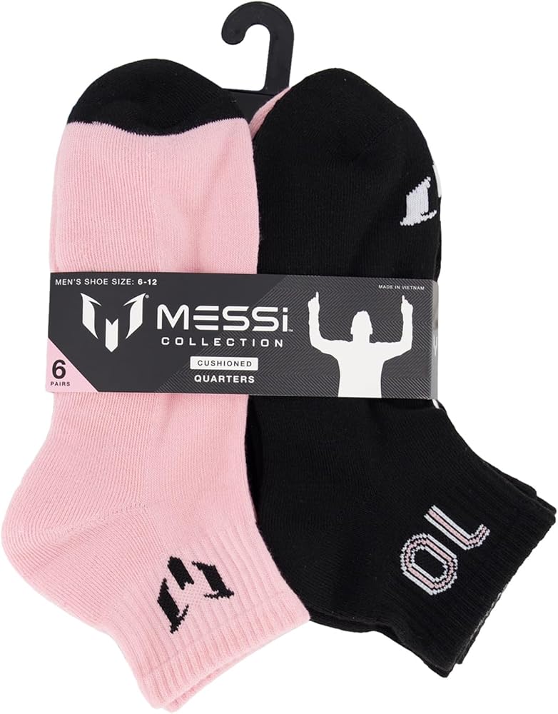 Step into comfort with these Messi quarter socks that are extra soft and stretchy. Our seamless socks set of 6 is ready for action mens size 10/13.