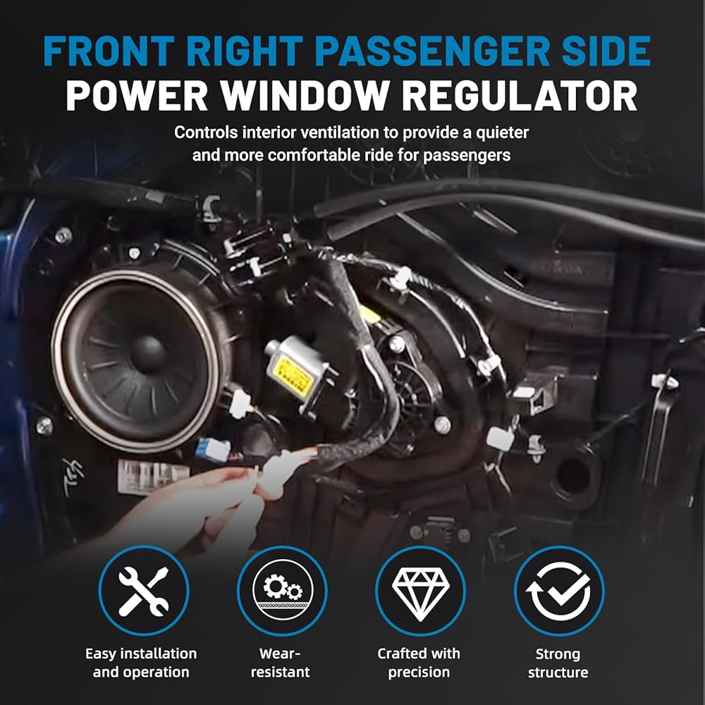 - 【الميزة: يُصدر منظم النافذة ضوضاء منخفضة جدًا أثناء التشغيل، مما يوفر للركاب رحلة أكثر هدوءًا ومصمم لسهولة التركيب والصيانة.