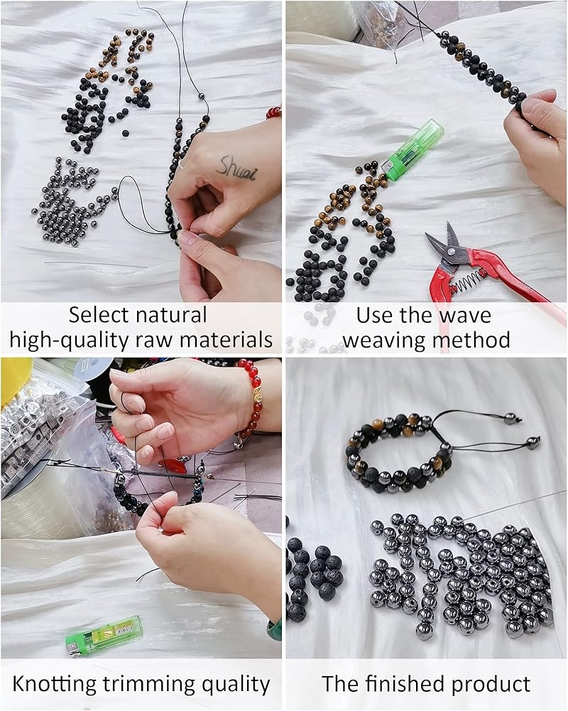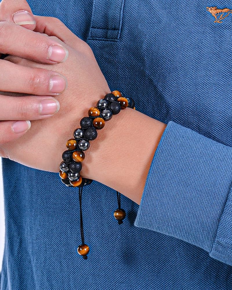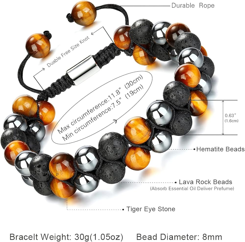 يمكن تعديل سوار الحجر العلاجي للرجال والنساء ليناسب مقاسات المعصم بين 7.5 بوصة و11.8 بوصة (19 سم - 30 سم)، مما يجعله مناسبًا لمعظم الأشخاص. يبلغ قطر كل خرزة 0.31 بوصة (8 مم). السوار مصنوع بحبل قوي لخلق نمط فريد لك.