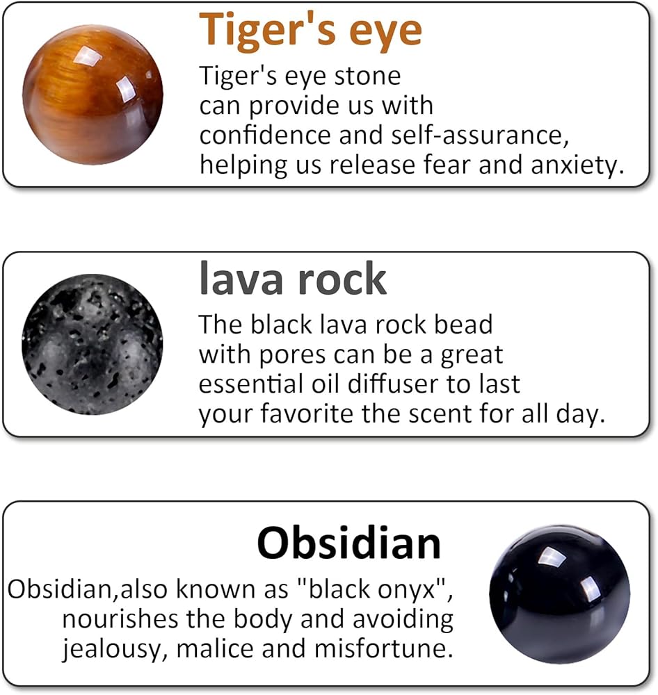 يمكن أن يوفر لنا حجر عين النمر الثقة والطمأنينة بالنفس، مما يساعدنا على التخلص من الخوف والقلق. الهيماتيت يبدد السلبية وينقي التوتر العاطفي في الجسم. حجر السج، المعروف أيضًا باسم "العقيق الأسود"، يغذي الجسم ويساعد على تجنب الغيرة والحقد وسوء الحظ.