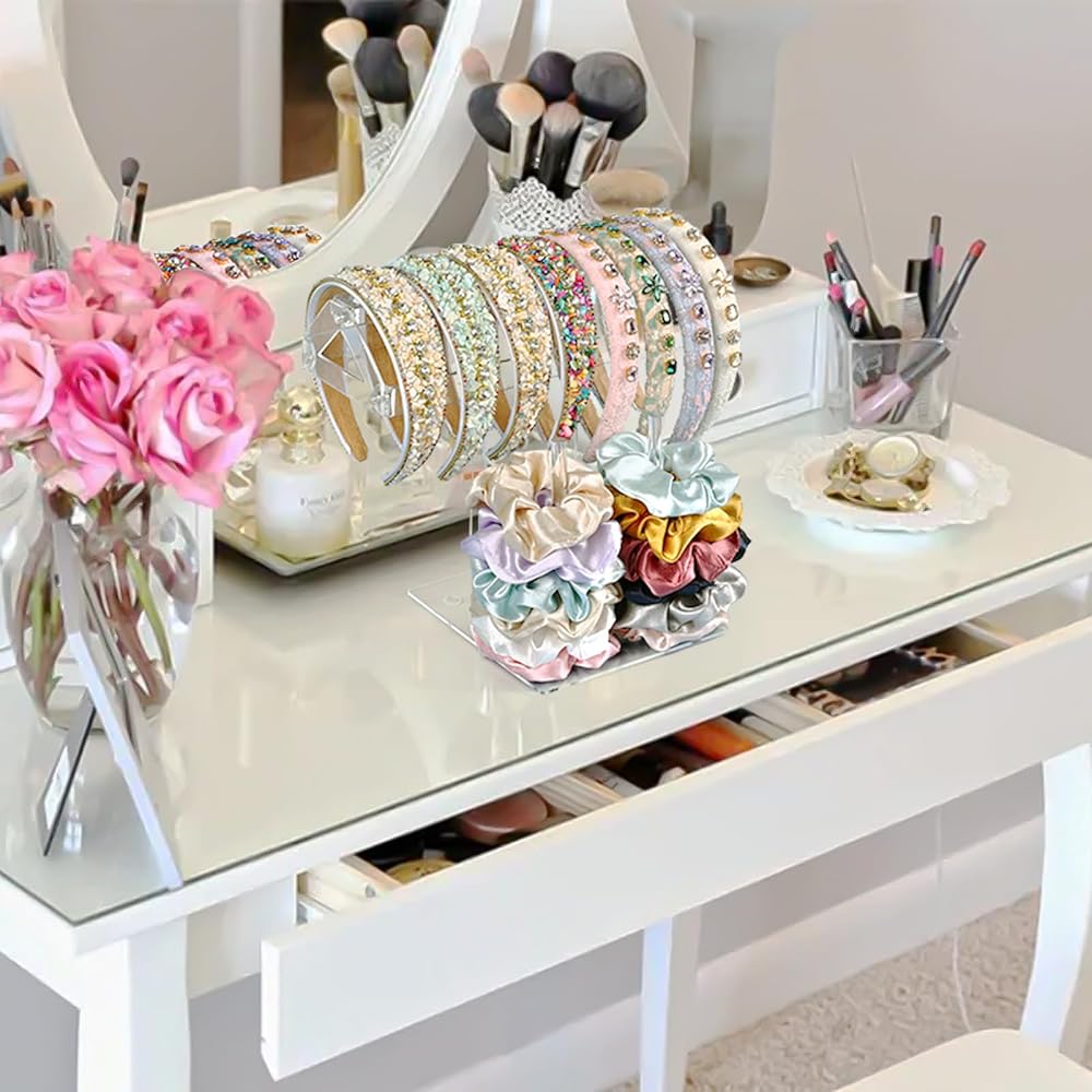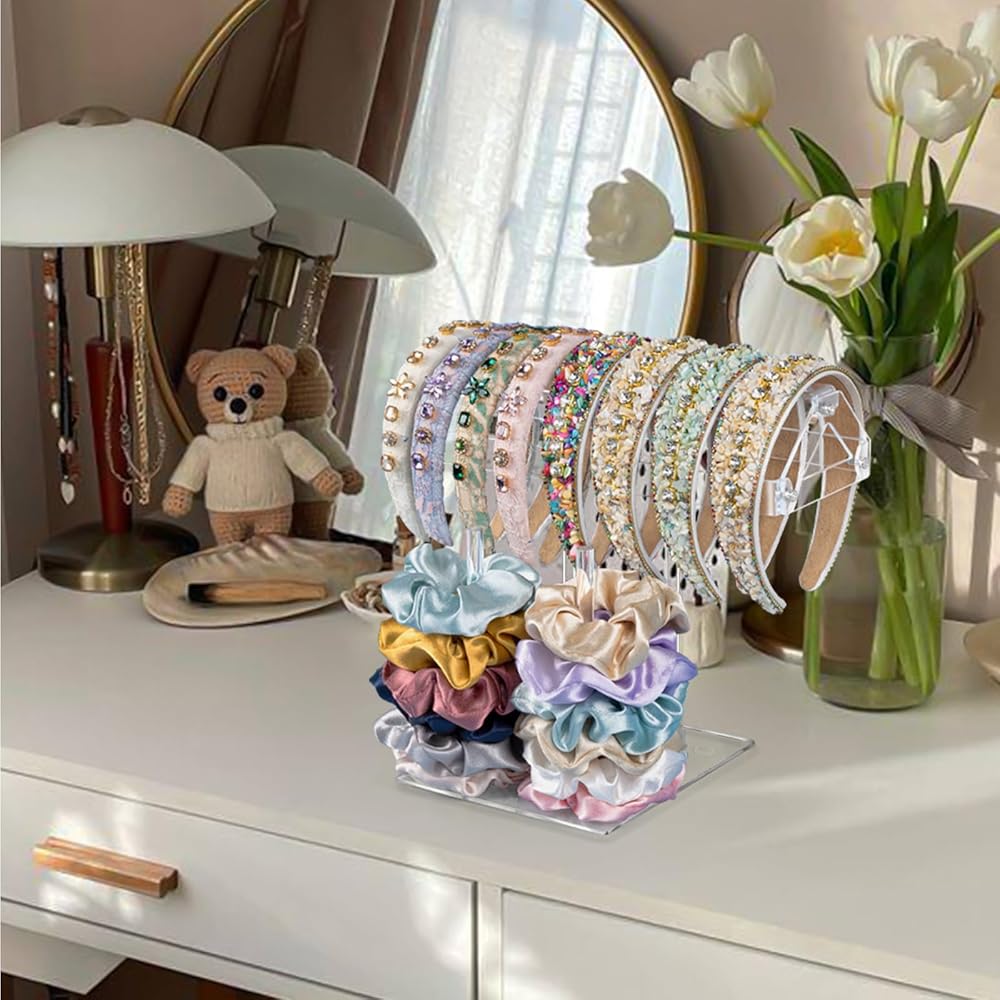 منظم عصابة الرأس، منظم حامل عصابة الرأس من الأكريليك، حامل عرض شفاف لعصابة الرأس بطبقتين، رف تخزين عصابة الرأس للفتيات والنساء