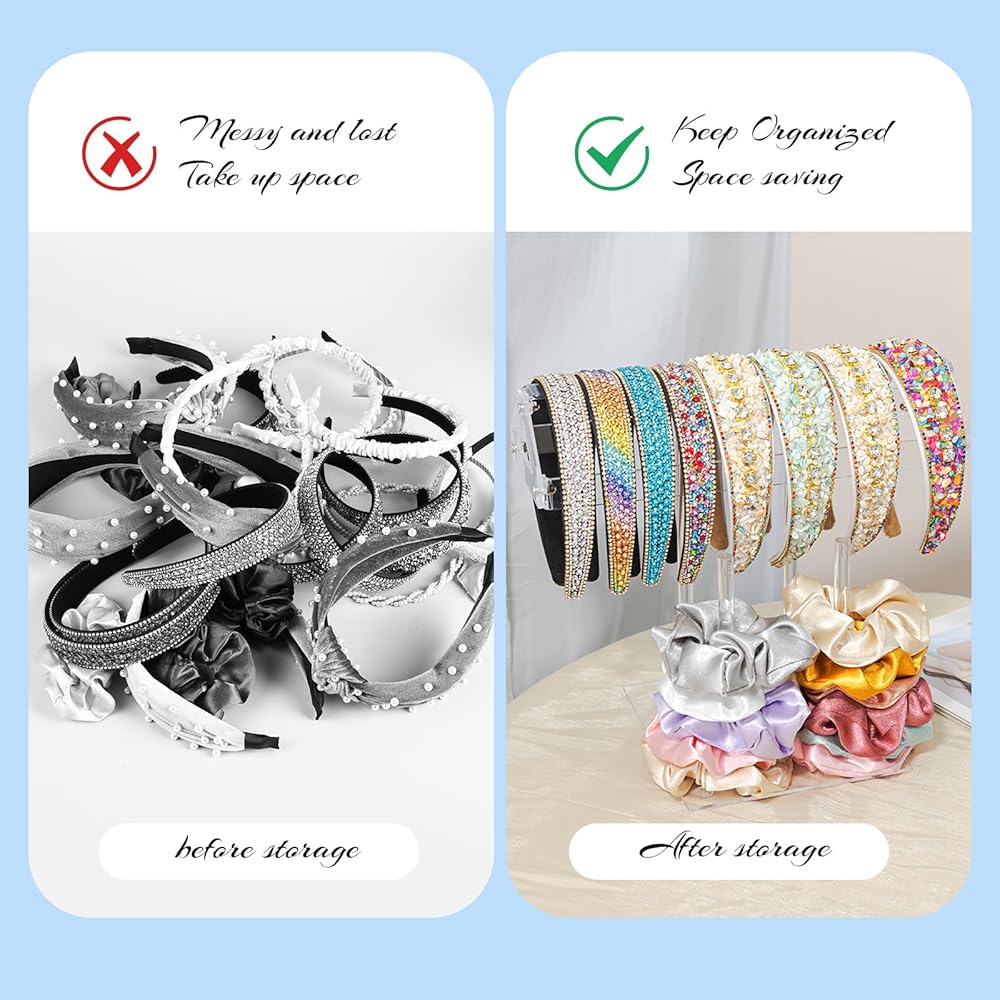 • جودة جيدة: مصنوع من الأكريليك المتين وغير الهش، يضمن حامل عصابة الرأس الأكريليك المتانة التي تدوم طويلاً. قل وداعًا للحوامل الواهية التي تنكسر بسهولة - تم تصميم منظم عصابة الرأس هذا ليتحمل الاستخدام اليومي.