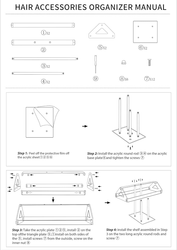• قم بتأمين إكسسوارات شعرك: مصممة بحواف مرتفعة وألواح أكريليك قوية، وسوف يتم تعليق عصابة الرأس الخاصة بك بقوة على منظم إكسسوارات الشعر ولن تنزلق أو تنزلق بعيدًا. لا مزيد من اللحظات المحبطة لسقوط عصابة الرأس من حامل عرض عصابة الرأس مما يبقيها في خط أنيق