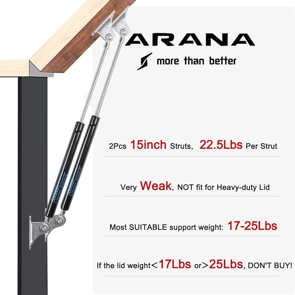دعامات الغاز ARANA مقاس 15 بوصة 22.5LB/100N صدمات الغاز مع دعامات تثبيت، 4 قطع 15 بوصة دعم الرفع الهيدروليكي لباب خزانة فتحة القارب وغطاء الصندوق، مجموعة من 4