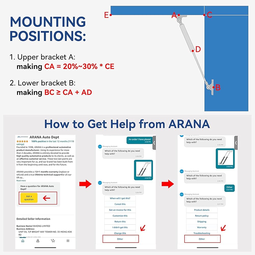 ✅ممتصات صدمات غازية ناعمة مفتوحة مقاس 15 بوصة - تم تصميم ممتصات الصدمات ARANA مقاس 15 بوصة بدعامات تثبيت من النوع L، ويمكن فك جميع أطراف الكرة والأقواس وتدويرها لتناسب متطلبات التثبيت المختلفة؛
