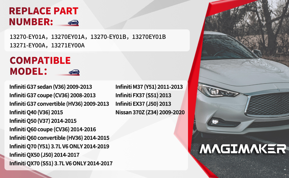 [استبدال رقم الجزء]: 13270-EY01A، 13270-EY01B، 13271-EY00A. للتأكد من أن هذا المنتج مناسب لسيارتك، يرجى التحقق من رقم الجزء البديل قبل الشراء.