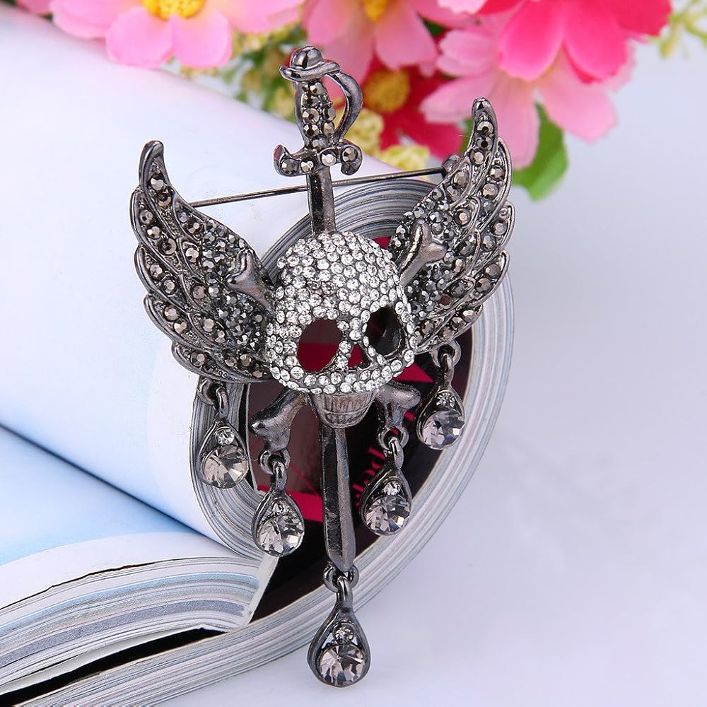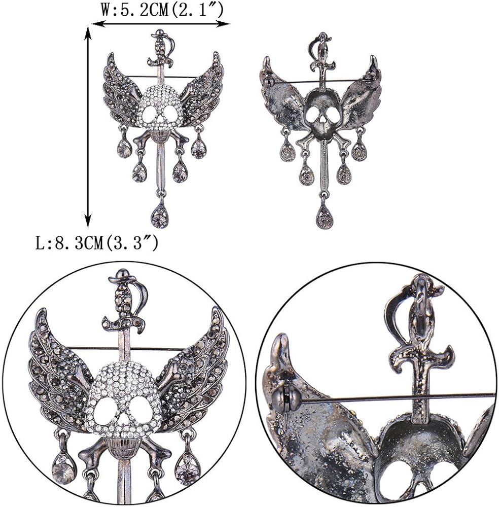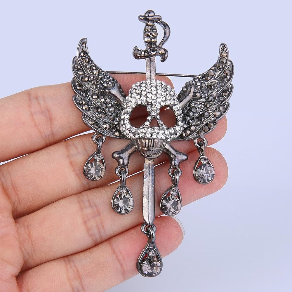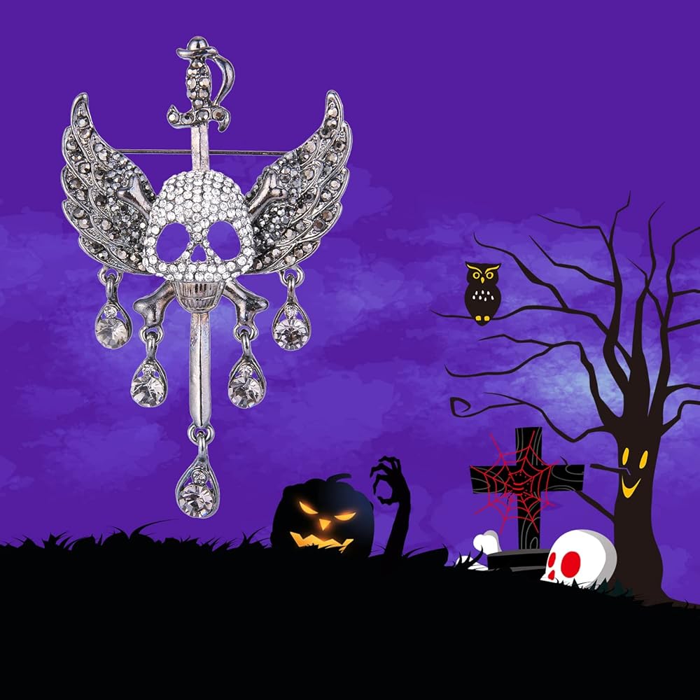 من أي وقت مضى الإيمان النمساوية كريستال هالوين الجمجمة العظام زاوية الجناح الدمعة بروش قلادة