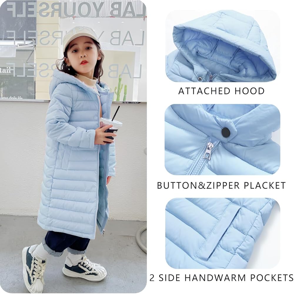 Mid-Length-- kids Long-Lined Maxi Jacket is great for everyday, casual wear; Full zipper closure that allows better accessibility and breathable room. If the coat comes compressed, please tap with your hands and it will be fluffy after a while, you must love the coat