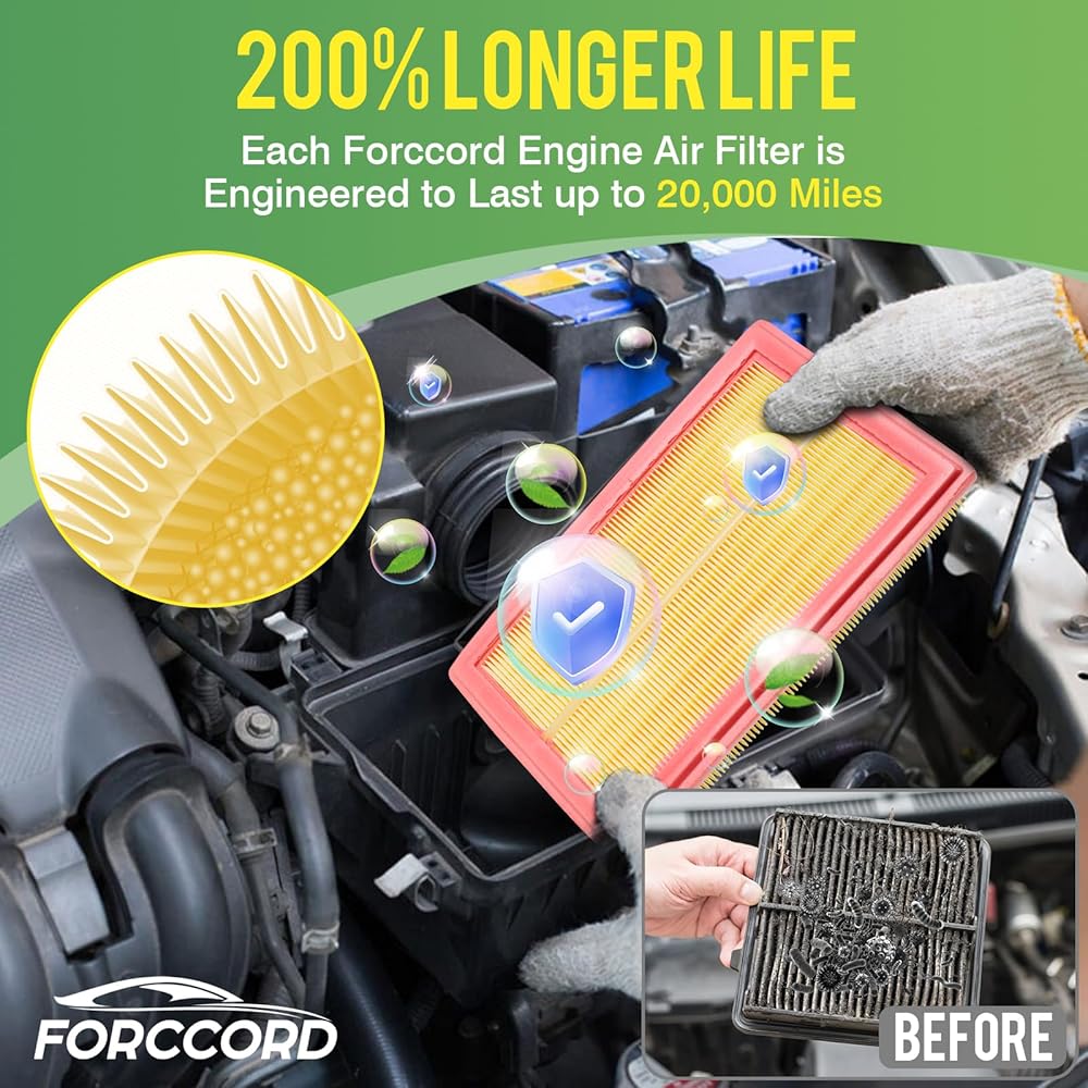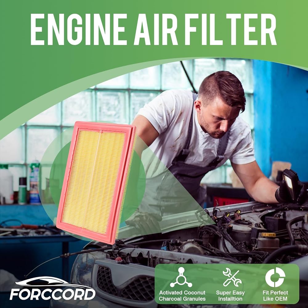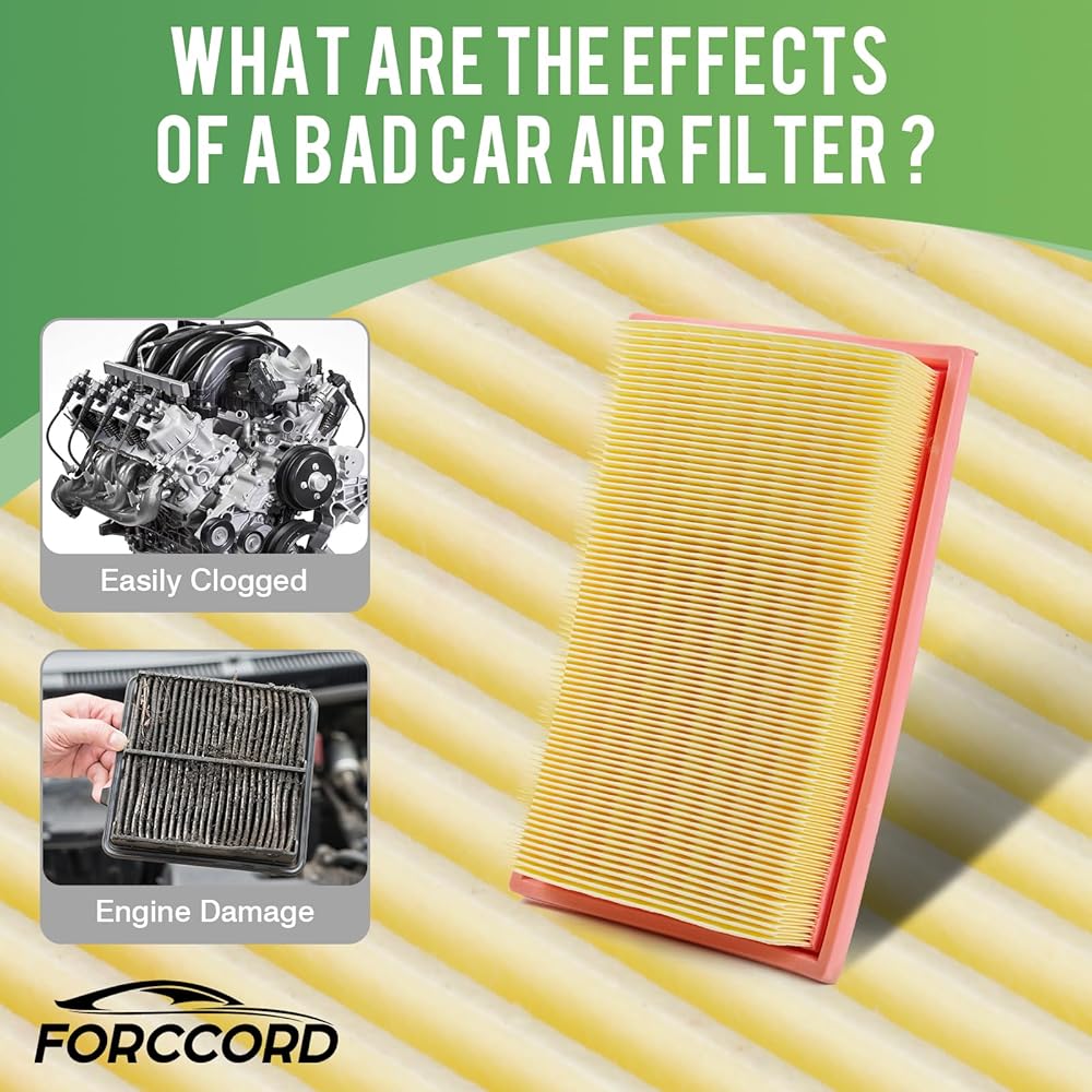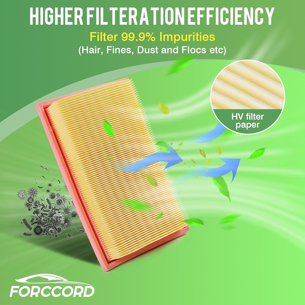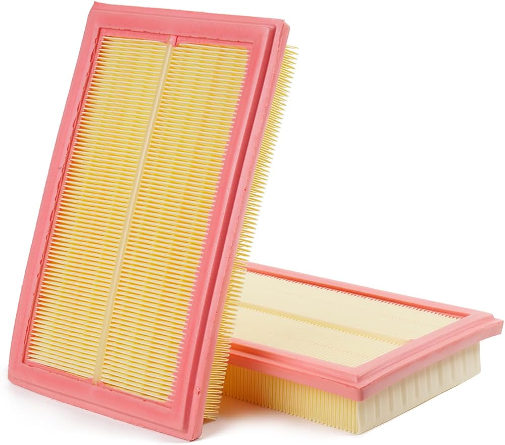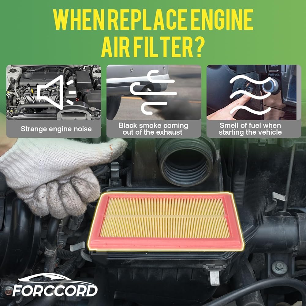 【أداء جيد】 فلتر هواء المحرك الخاص بنا مملوء بورق فلتر مادة خاصة + ختم معالجة بلاستيكي عالي الجودة، قدرة كبيرة على حمل الغبار ومقاومة فائقة للتآكل، يوفر هواء أنظف لمحركك ويمنع التآكل المبكر للمحرك.