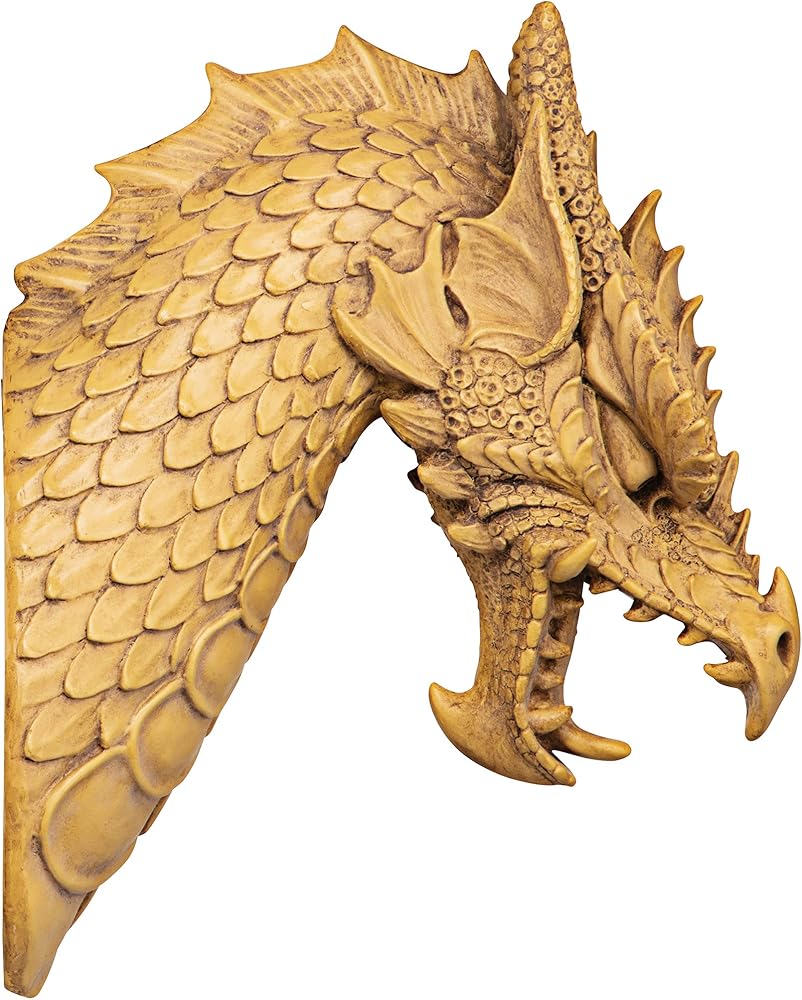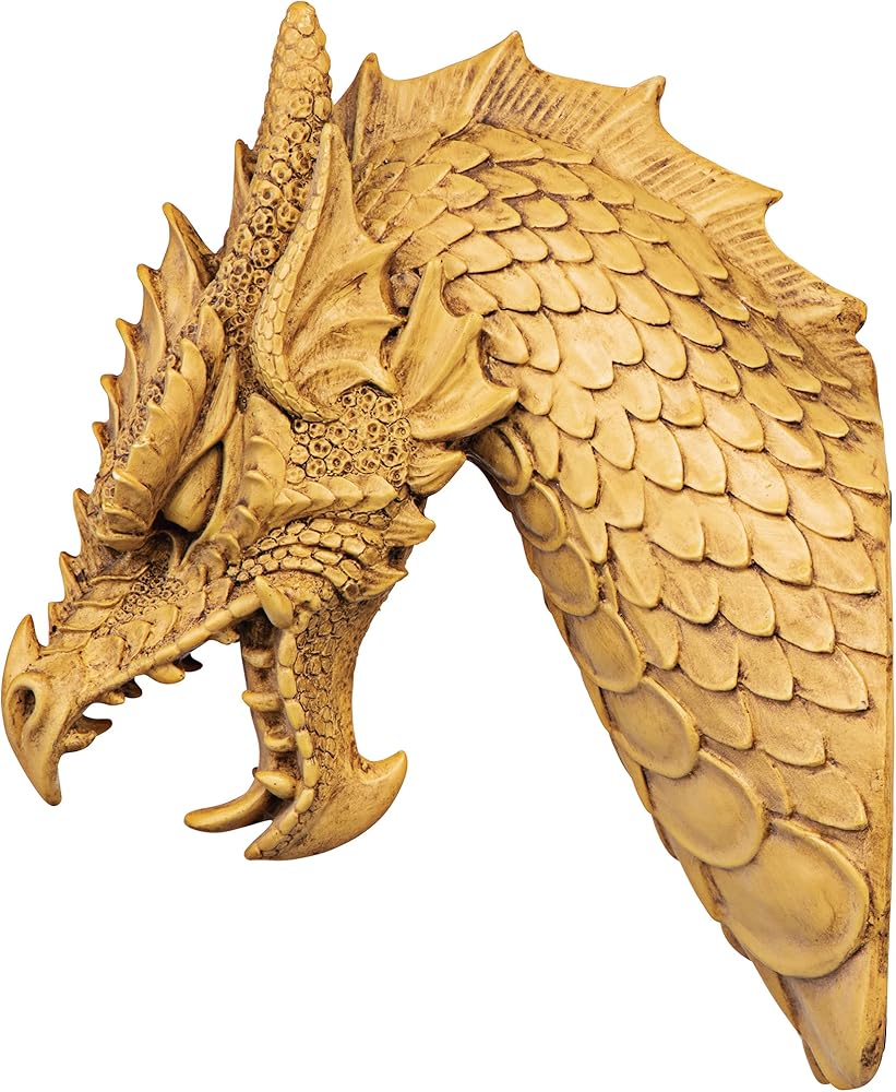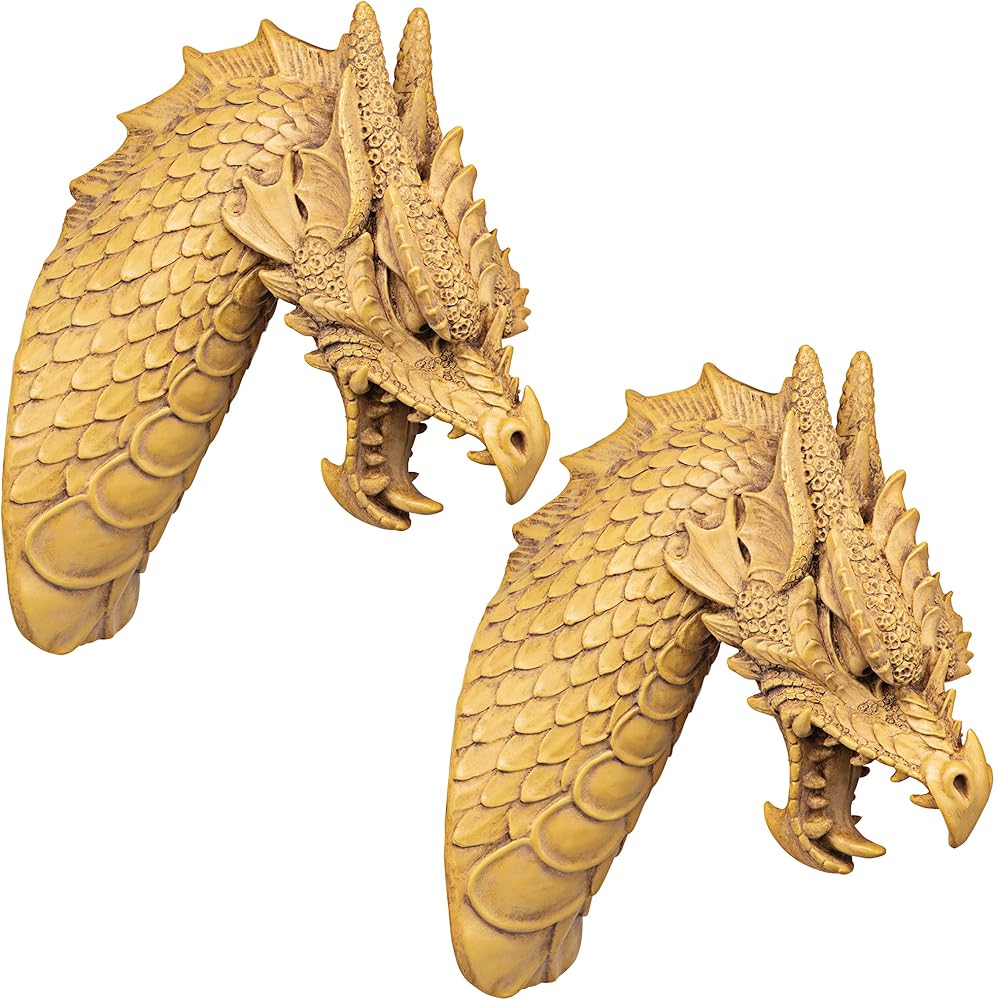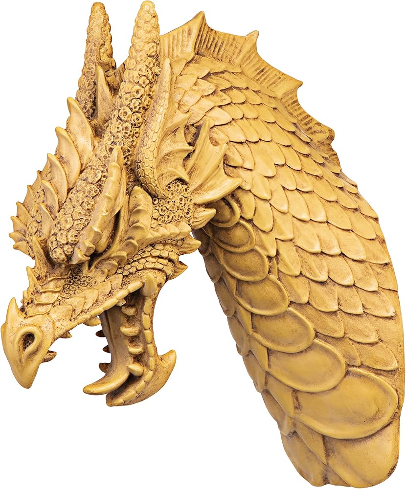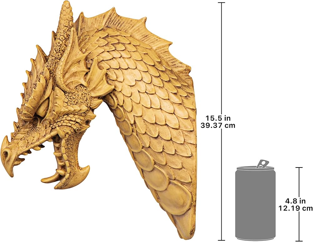 Noted dragon artist Manchester says he sculpted ornamental scales, pointed horns, menacing tongue and bared teeth - "Everything but the fire!" - into this imaginative medieval beast so lifelike that it even extends a full foot from the wall! Mounted singly as the centerpiece of a Gothic collection or in procession dramatically lining your castle walls, our quality designer resin Toscano exclusives aren't easily forgotten!