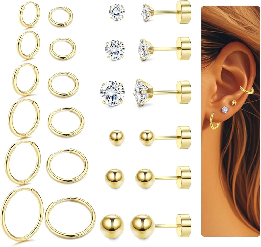 💕مجموعات أقراط لقطع متعددة: يتضمن طلب واحد 6 أزواج من الأقراط الغضروفية و6 أزواج من الأقراط ذات الظهر المسطح: أقراط تشيكوسلوفاكيا، وأقراط كروية. تصميم برغي كلاسيكي، يمكنك مطابقته بمرونة. نحن نختار بعناية كل زوج من الأقراط لضمان حصولك على أفضل الأقراط والأطواق ذات الجودة العالية.