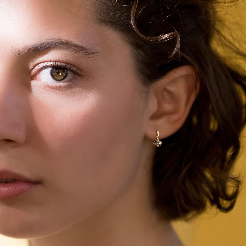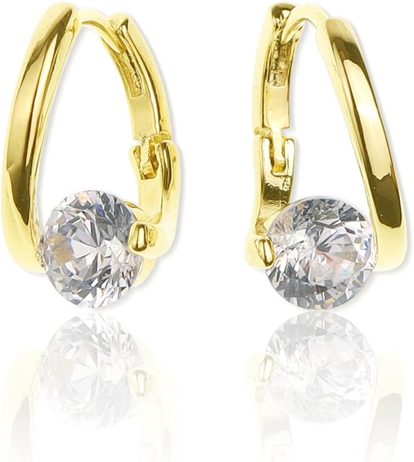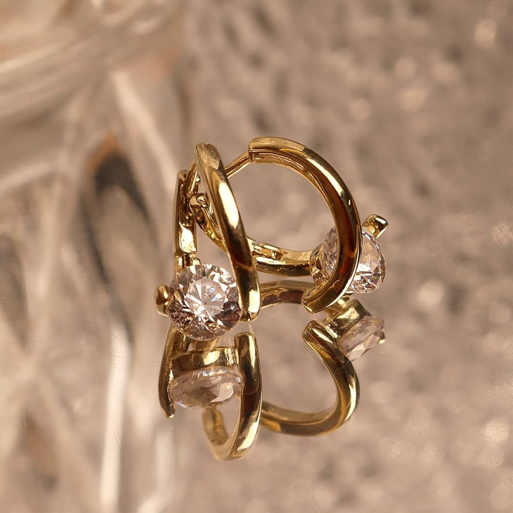 • 14k gold plated brass, fade-resistant, quality cubic zirconia rhinestone, sparkly simulated faux diamond, lightweight, hypoallergenic, comfortable to wear all day, perfect for preppy and sensitive ears.