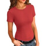 هذا القميص ذو الرقبة الدائرية مصنوع من مادة ناعمة وقابلة للتمدد والتي يمكن أن تساعد على تكبير جسمك بشكل مثالي وإظهار منحنيات جسمك المثيرة. جاهزة ولكن ليست ضيقة جدًا. سميكة بما فيه الكفاية ولا يمكن الرؤية من خلالها. قمصان صيفية أساسية مناسبة للفتيات أو النساء.