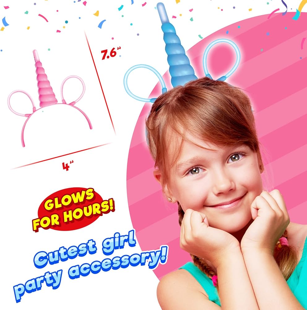 • IDEAL PARTY FAVORS & BIRTHDAY GIFTS - Light weight and comfortable to the head and ears. It lights up and glows. Cute unicorn headband for girls and women. Awesome birthday party pink gifts to give to kids and to your little girl. Great unicorn party supplies, birthday party hats & tiara, classroom prizes and giveaways. Available in bulk.