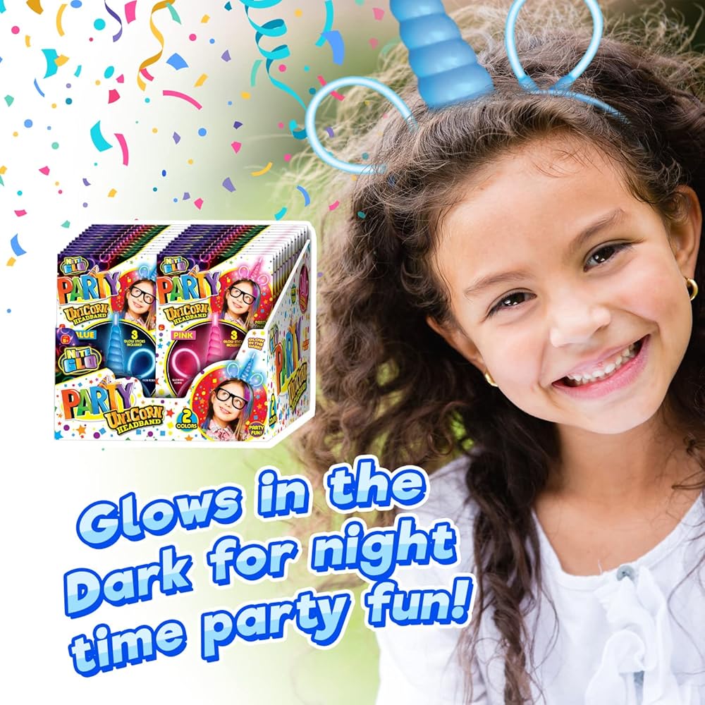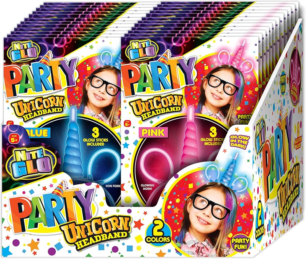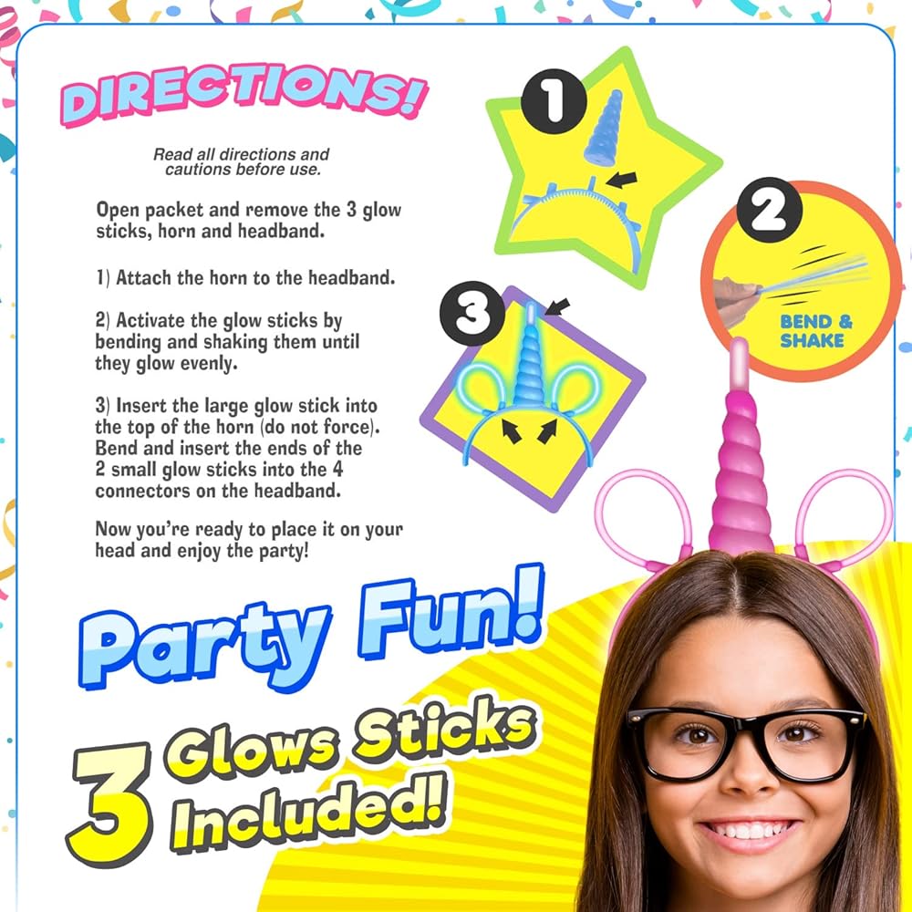 • 1 INDIVIDUAL PACK OF LIGHT UP UNICORN HEADBANDS - Comes in either blue or pink assorted color. Includes 3 glowsticks as attachments for the head band. Bring magic to life when you wear this glowing Unicorn Horn headwear headband as it lights up the night with glowing colors. Great women girls unicorn horn headbands.