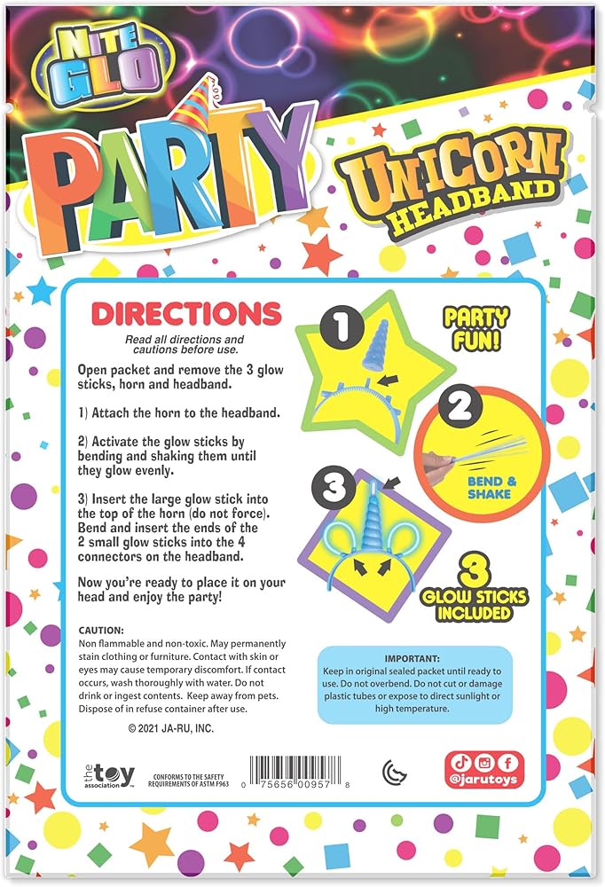 JA-RU NiteGlo Light Up - عصابة رأس يونيكورن قرن متوهجة للفتيات الصغيرات إكسسوارات يونيكورن | زي للأطفال. 957