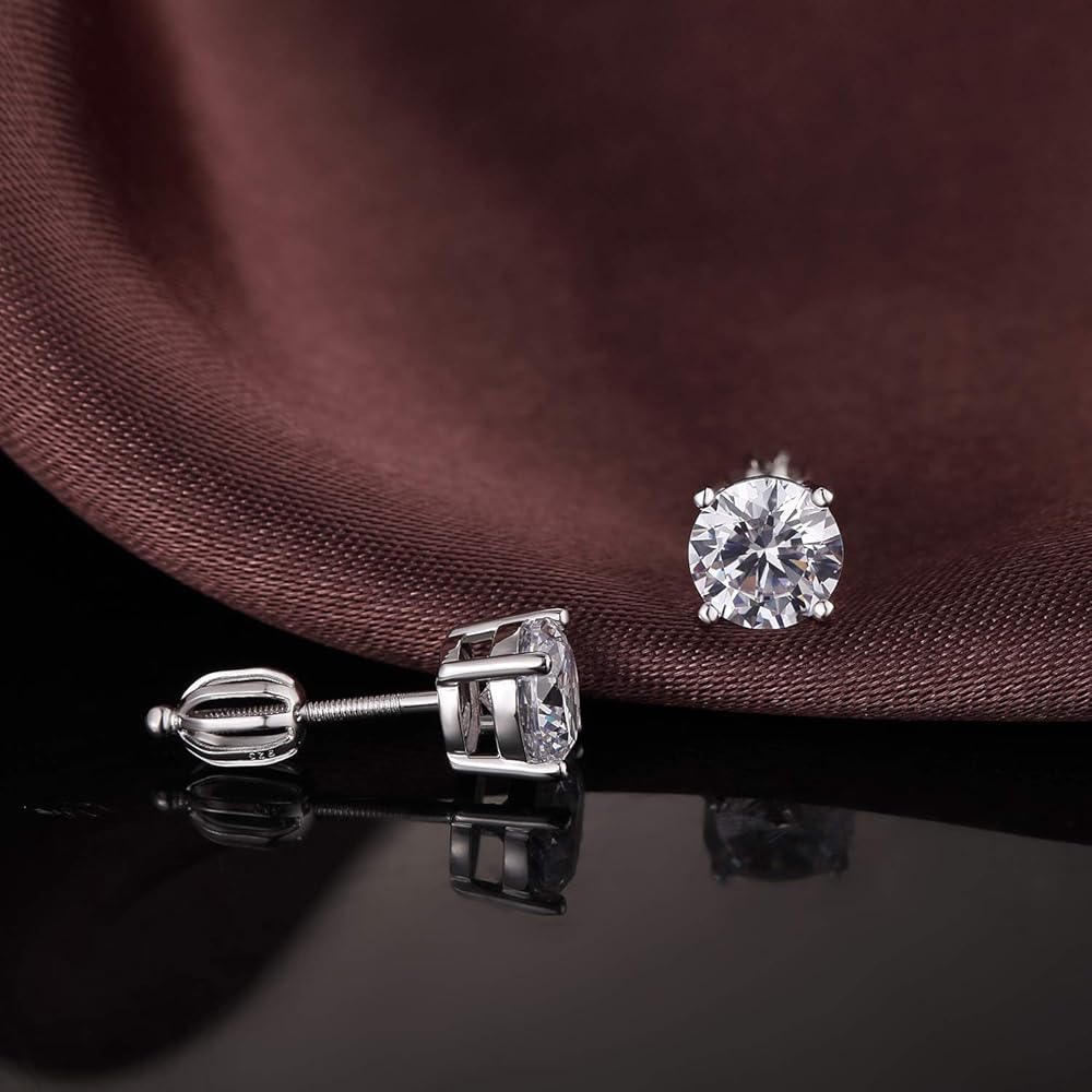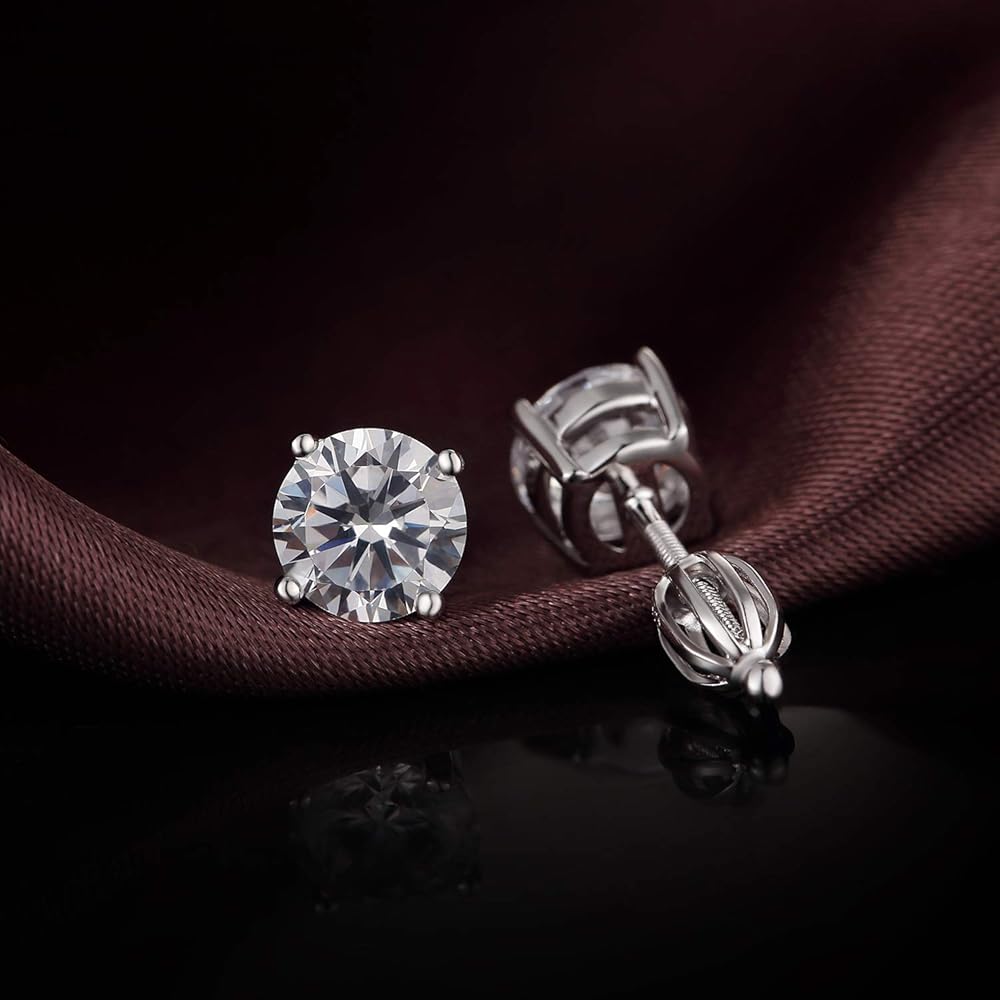 • تأتي مع حقيبة المجوهرات: حلق ألماس خلفي لولبي للرجال مرصع بأحجار الزركونيا المكعبة في إعدادات سلة ذات 4 شقوق مع ظهر لولبي آمن.