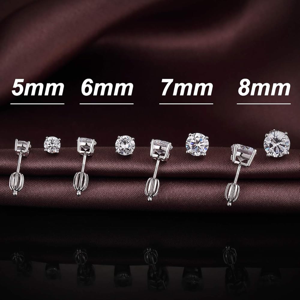• النمط: أقراط كلاسيكية من الفضة الإسترلينية عيار 925 مرصعة بالألماس CZ مع ظهر لولبي تتميز بحلق مرصع بأحجار الزركونيا المكعبة 4 مم، 5 مم، 6 مم، 7 مم 8 مم.