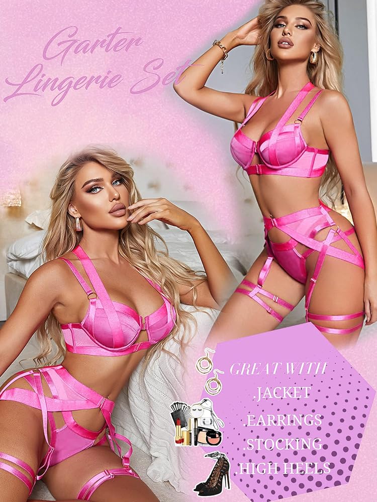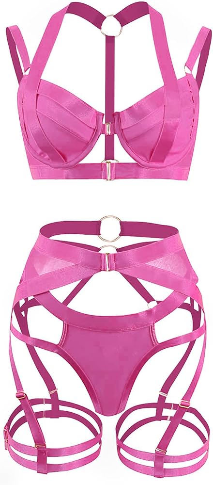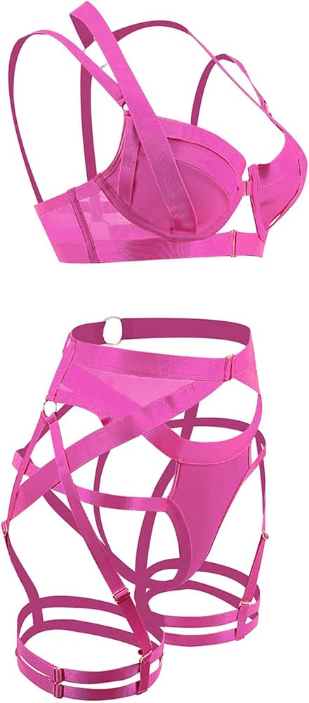 {Style} مجموعة الملابس الداخلية هذه ذات نمط الحزام مع الكثير من الأشرطة العريضة بواسطة حلقات معدنية، يمكن أن تعزز التراكب الأنوثة وتحدد خطوط جسمك المثيرة.