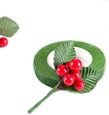 200 قطعة من التوت الاصطناعي الصغير التوت الأحمر لعيد الميلاد 100 قطعة من الأوراق الخضراء المزيفة مع 1 لفة شريط زهور صغير من الكرز المزيف شجرة عيد الميلاد DIY هدية ديكور