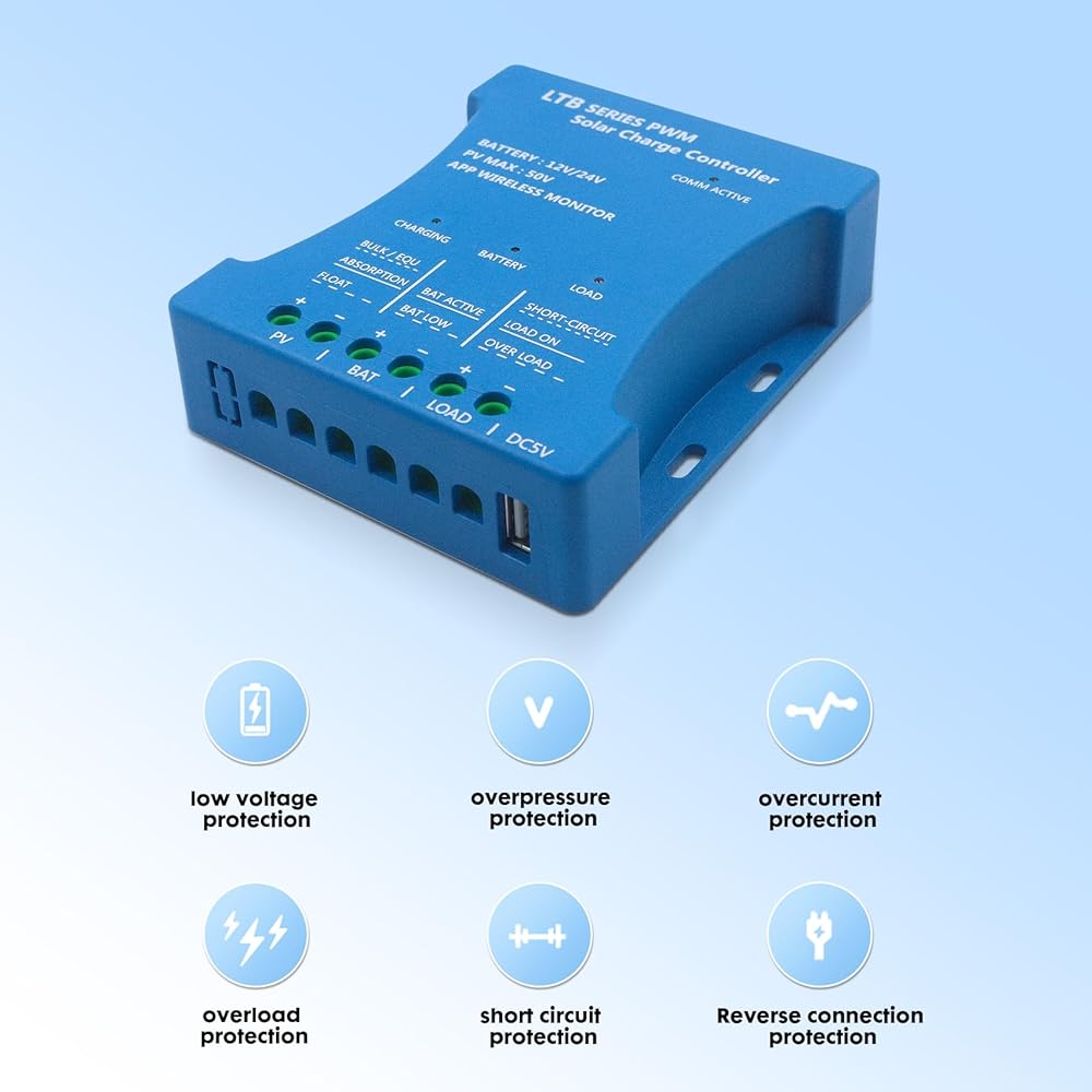 【حماية كاملة للنظام】 مصممة لحماية نظامك الشمسي. يوفر حماية شاملة وموثوقة لحماية المعدات والأجهزة الخاصة بك من الشحن الزائد، والإفراط في التفريغ، وقصر الدائرة، والحمل الزائد، والقطبية العكسية، والتيار العكسي، وتعويض درجة الحرارة، مما يحافظ على تشغيل أجهزتك وأنظمتك بسلاسة وأمان، ويحمي بطاريتك و منع أي حوادث. يمكنك شحن بطاريتك براحة البال.