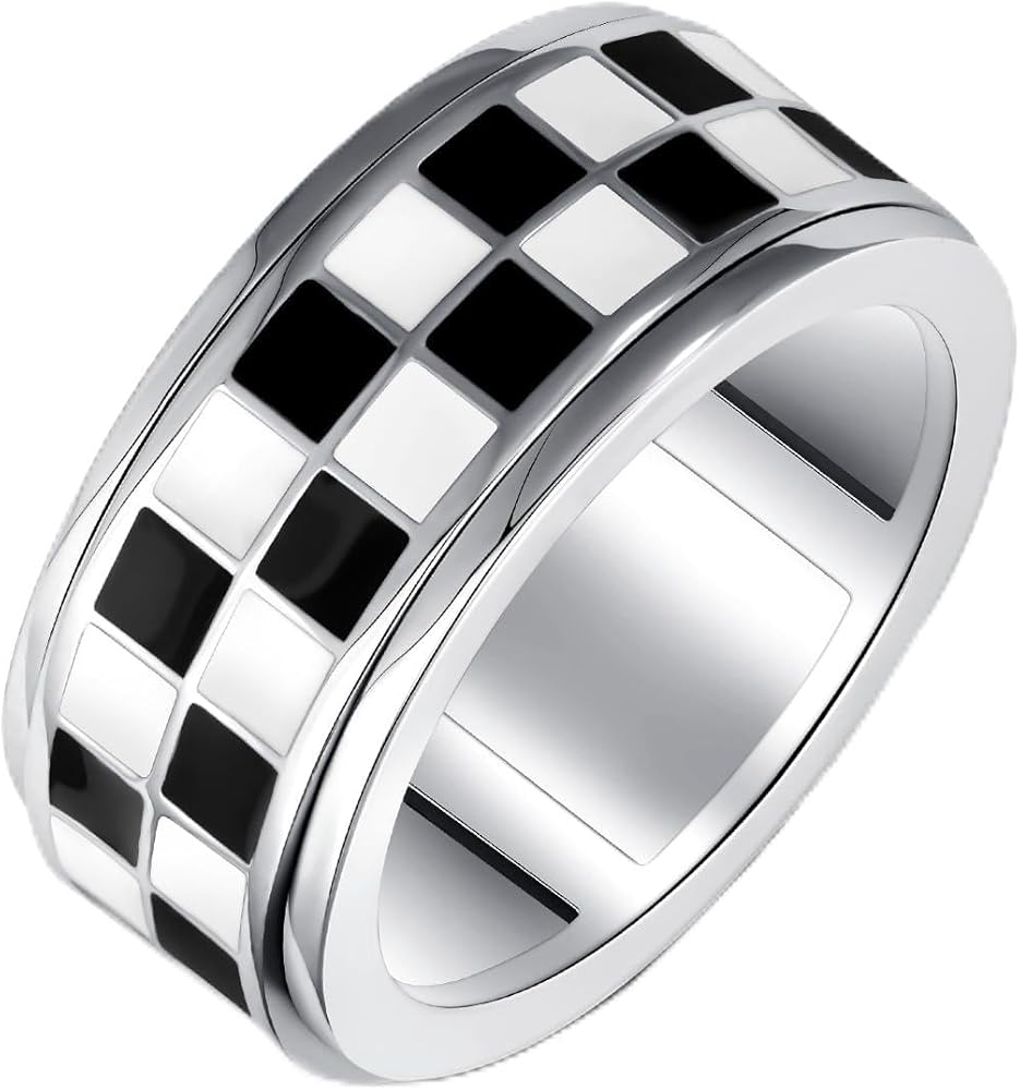 التصميم: هذه حلقة أنيقة وبسيطة ذات مربعات مربعة باللونين الأبيض والأسود تشبه الأنماط الموجودة على رقعة الشطرنج، مما يخلق تباينات مذهلة بصريًا. هذه أيضًا حلقة ضغط تساعد على تنظيم العواطف بشكل صحيح وتقليل القلق وتخفيف التوتر. يمكنها مساعدة الأشخاص الذين يعانون من اضطرابات القلق ويمكن أيضًا ارتداؤها كإكسسوار للأزياء.