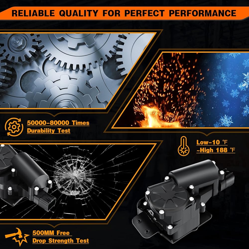 【مادة متينة مطورة】محرك الباب الخلفي الخاص بنا مصنوع من مادة PBT + ABS عالية الجودة، وسبائك فولاذية قوية، وهي مقاومة للخدش والكسر والصدمات ويمكنها تحمل الظروف الجوية القاسية ودرجة الحرارة.