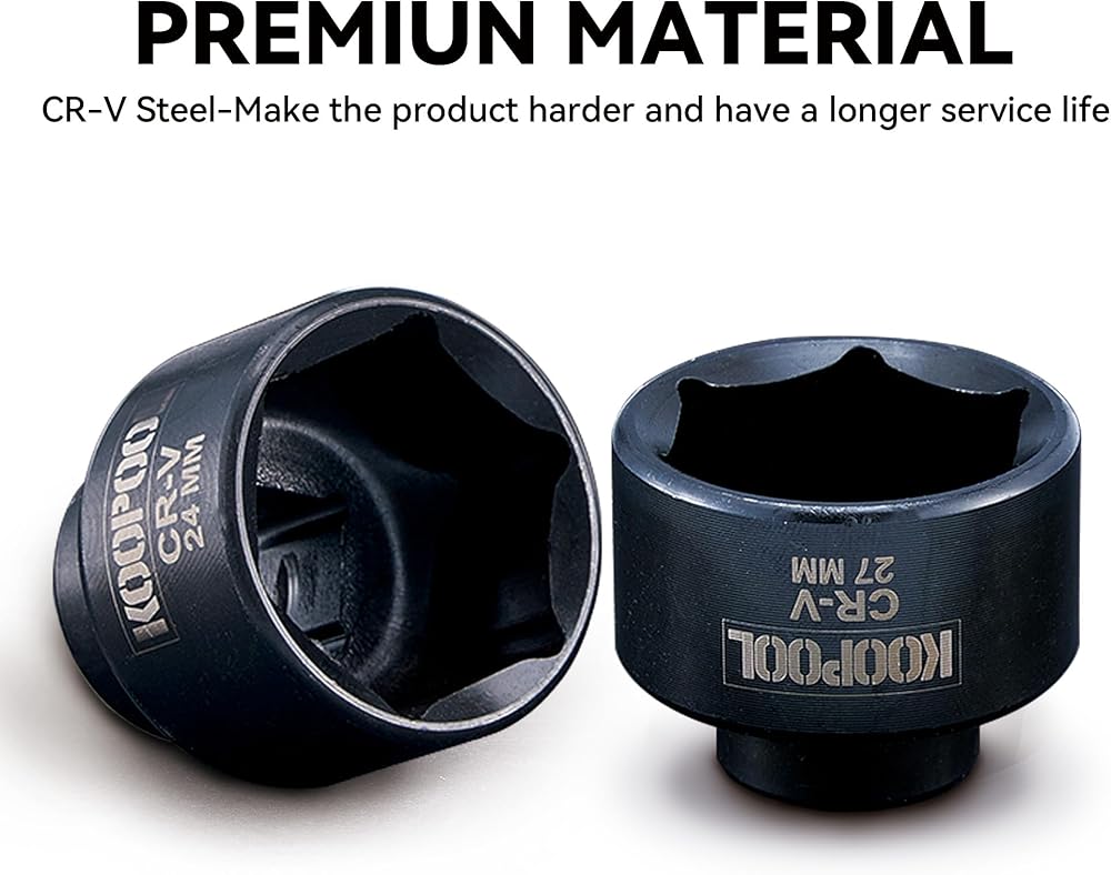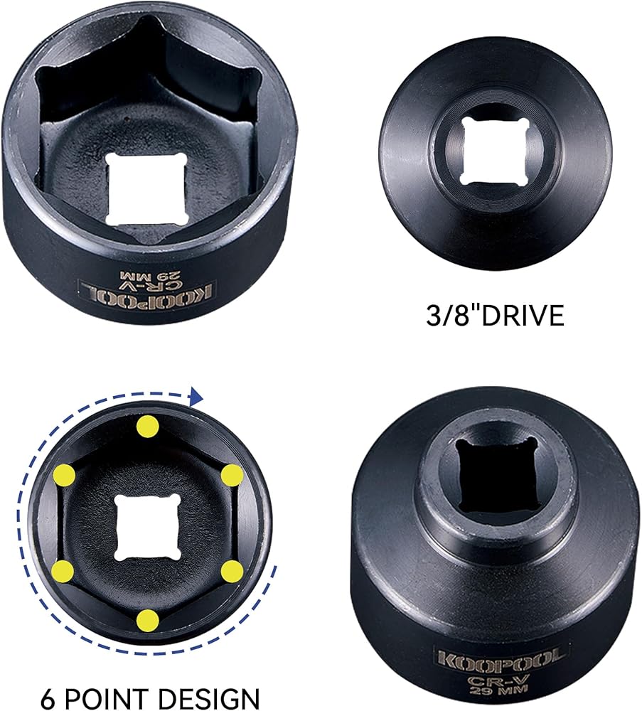 PREMIUM QUALITY: The oil filter socket is made of durable CR-V steel with a rust-resistant black phosphate finish. Precision-engineered to ANSI standards for safe, high-torque use. Clear size markings simplify tool selection.