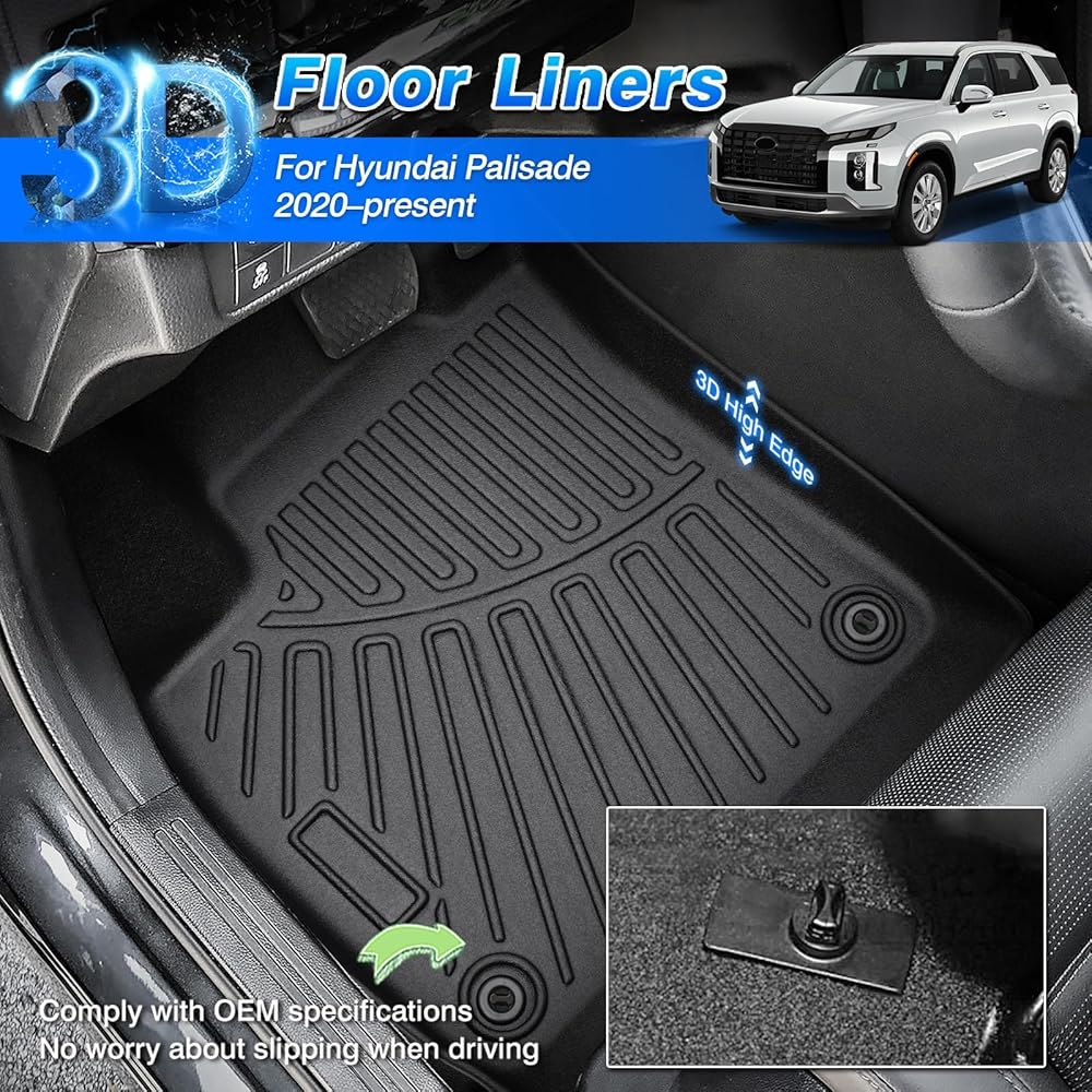 ملاءمة مخصصة لـ Palisade -- بطانات أرضية CARTIST مصنوعة خصيصًا لـ Palisade 2020 2021 2022 2023 2024 2025، بناءً على معلومات السيارة الصحيحة، بدون تشذيب. يعتمد تقنية الفحص ثلاثي الأبعاد لالتقاط كل زاوية وشق لتوفير ملاءمة وتغطية مثالية.