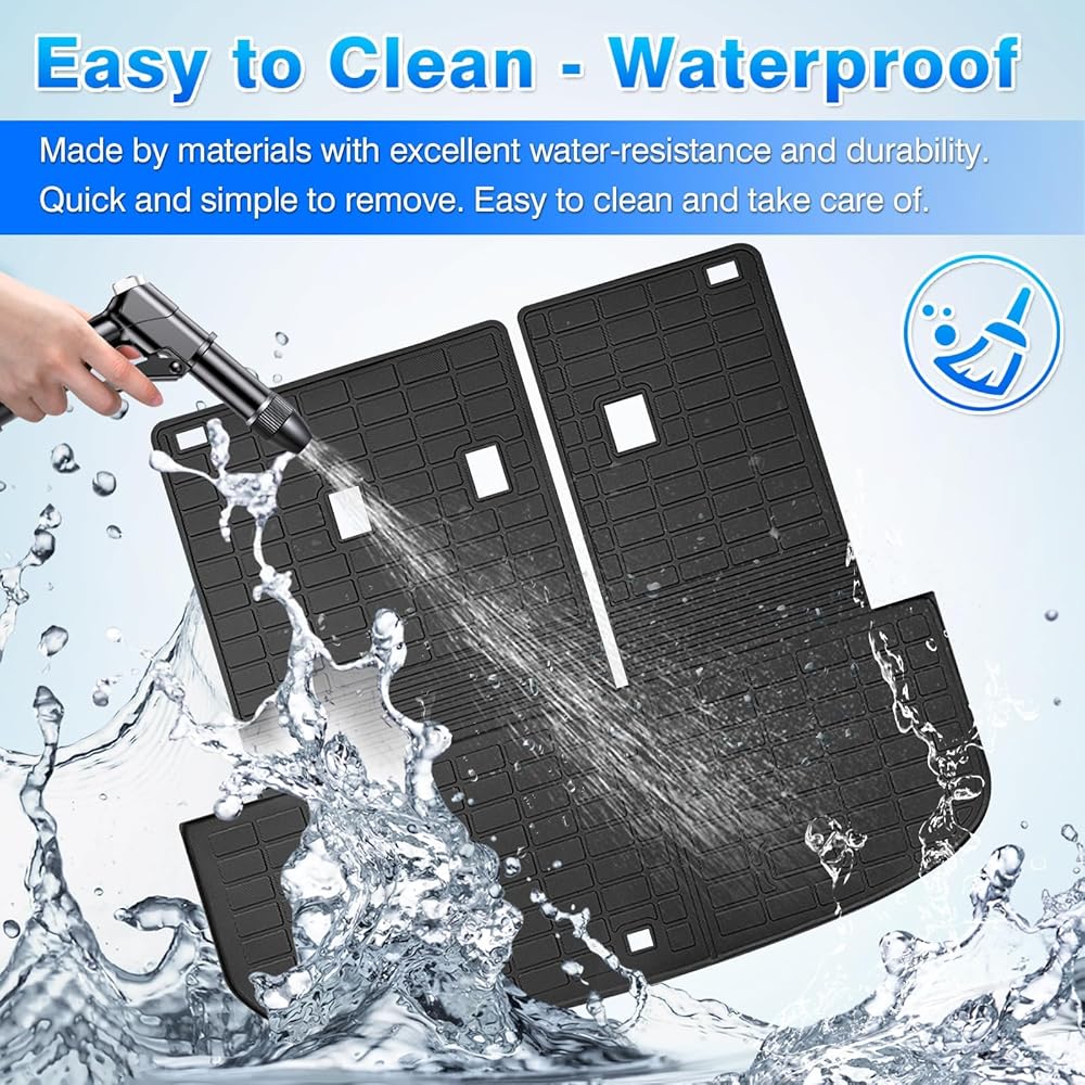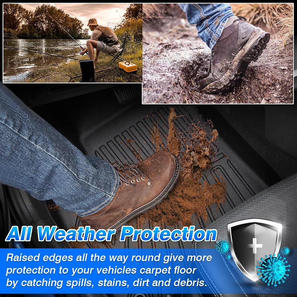 حماية وتنظيف لجميع الأحوال الجوية - سجادات أرضية Palisade مقاومة للماء، ويشكل تصميم الأخدود قنوات لتجميع الماء والطين والثلج والحطام وما إلى ذلك، لتجنب الانزلاق العرضي والبقع على سجاد السيارة الأصلي. سهل التنظيف عن طريق شطفه بالماء، وتجفيفه بالمنشفة.