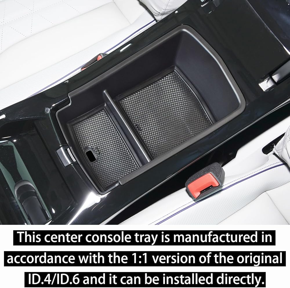 صينية تخزين منظم وحدة التحكم المركزية متوافقة مع ملحقات VW ID.4 2023 2024 ID.6، صينية مسند ذراع منظم وحدة التحكم الوسطى ID4 ID6 صندوق تخزين ثانوي مواد ABS