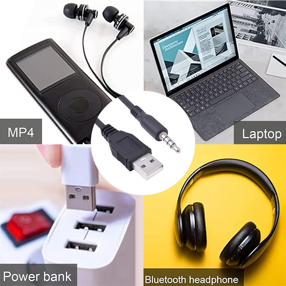 كابل شحن يو إس بي إلى 3.5 مم جاك أوكس، نوع A إلى 3.5 مم ذكر كابل شحن متوافق مع الكمبيوتر المحمول ومكبر الصوت والسيارة ومشغلات MP3 MP4 وسماعات الرأس وأي أجهزة أخرى مع منفذ 3.5 مم