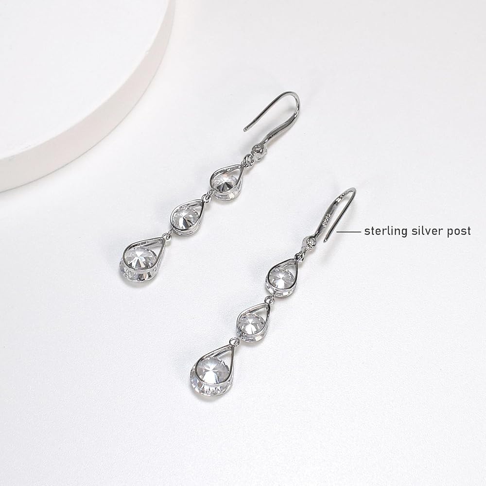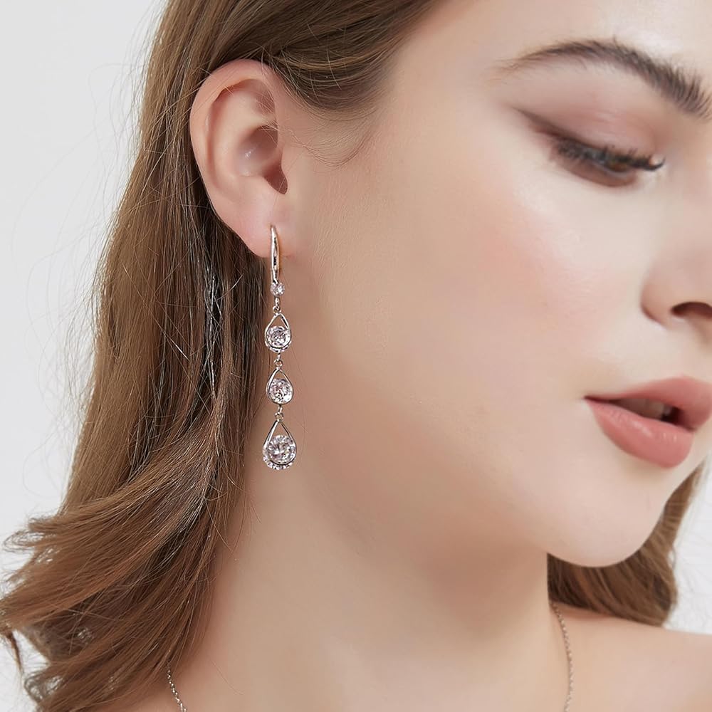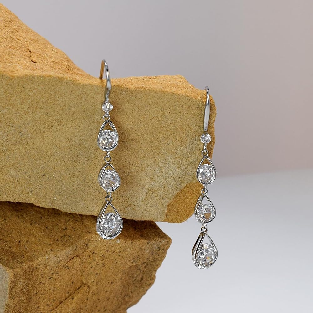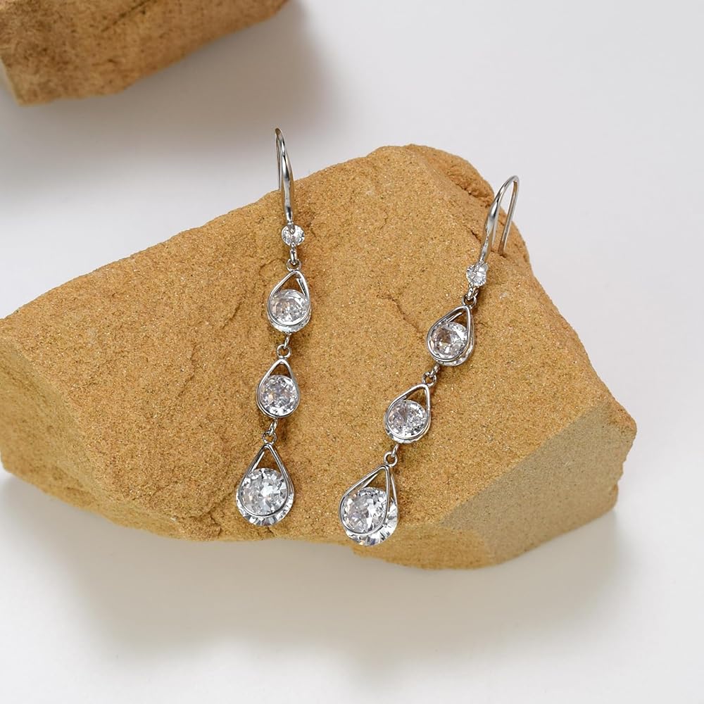 تصميم مبهر: تتميز هذه الأقراط المكعبة المصنوعة من الزركونيا المكعبة بنمط الدمعة مع الماس المقلد للحصول على مظهر أنيق رسمي متألق. 2 لون - أقراط ذهبية عيار 14 قيراط وأقراط فضية شفافة