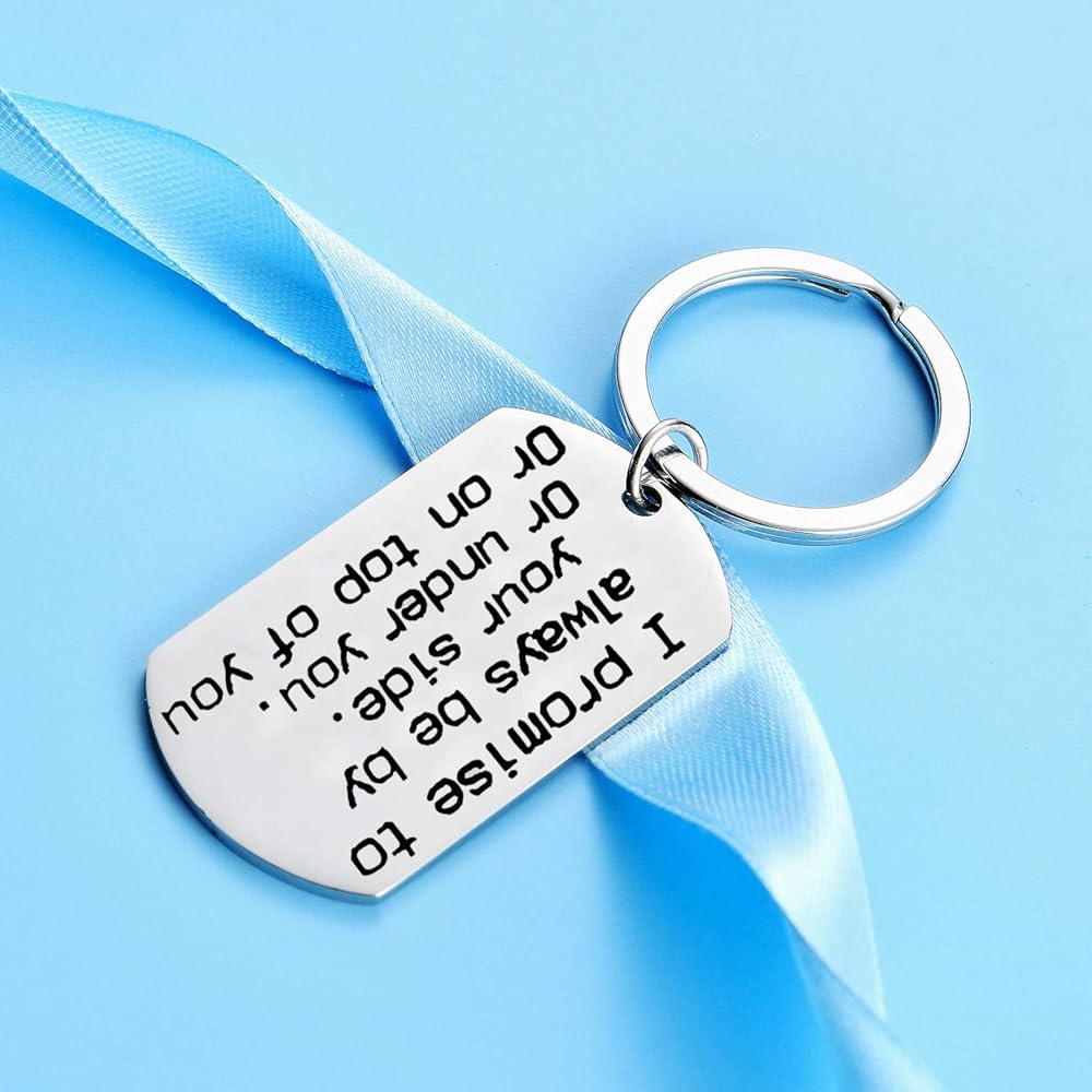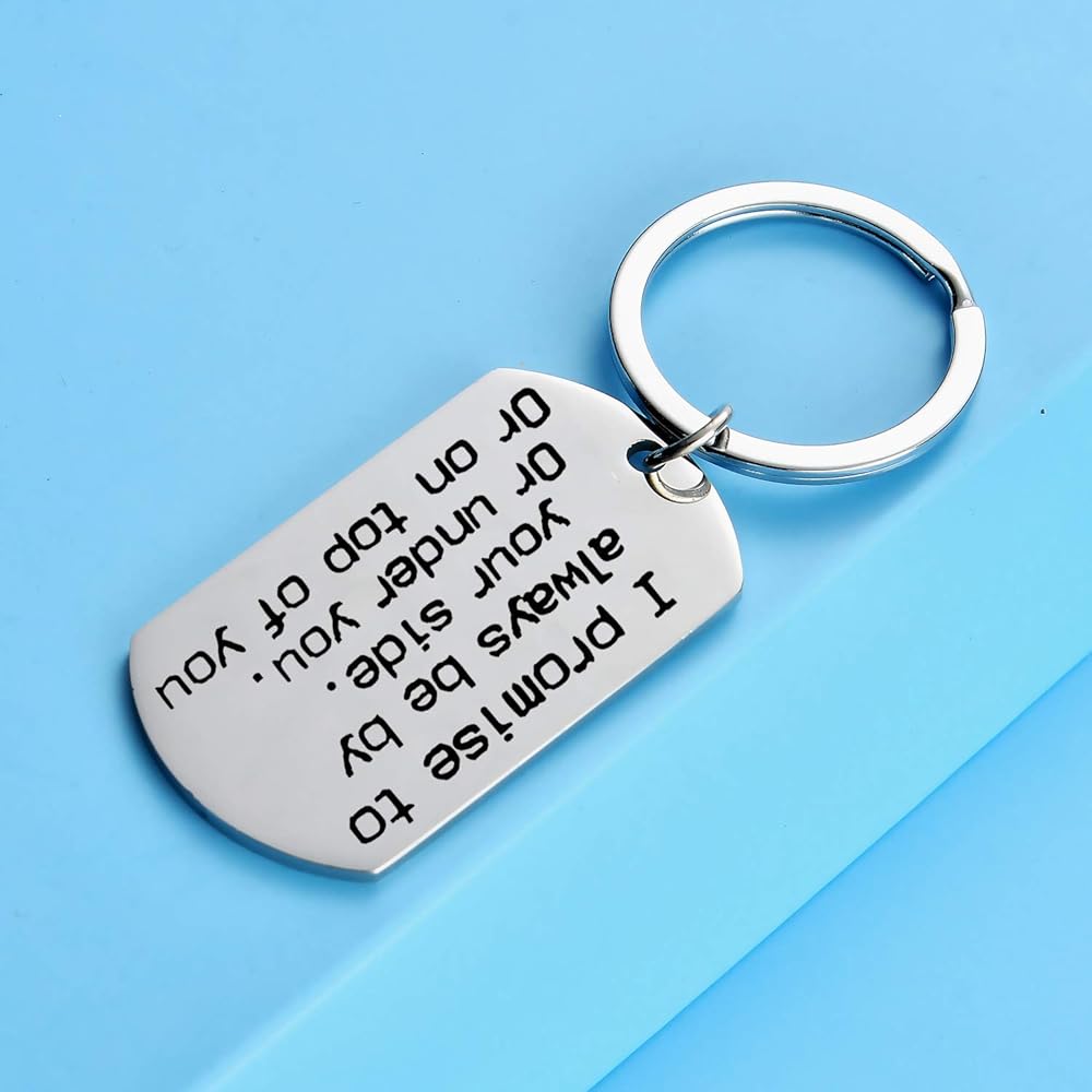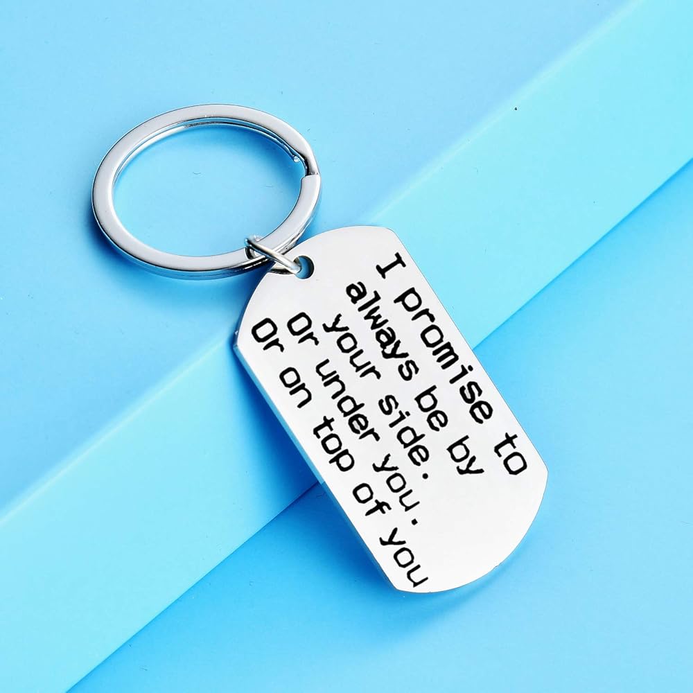 Funny Keychain Boyfriend Girlfriend Husband Wife Gifts - Always Be Your Side Or Under You Or On Top of You (Style - I Promise)