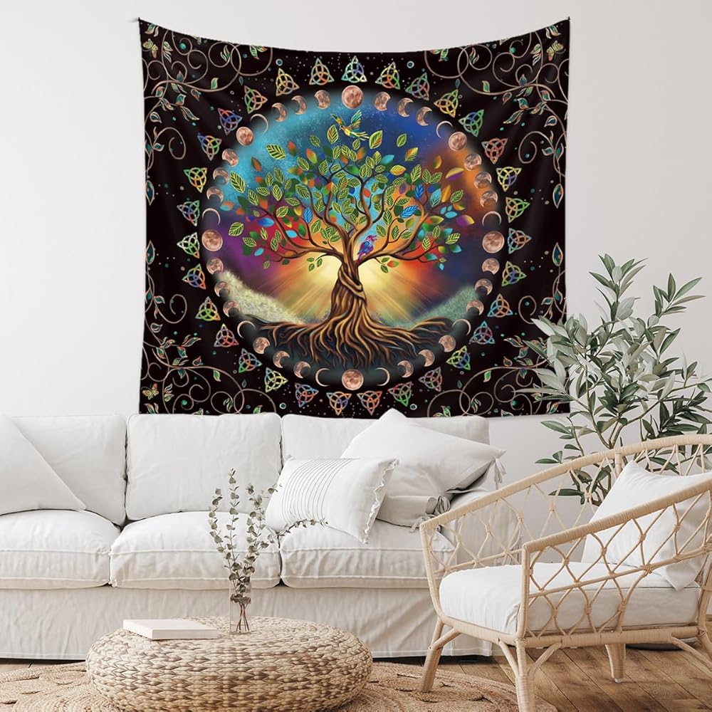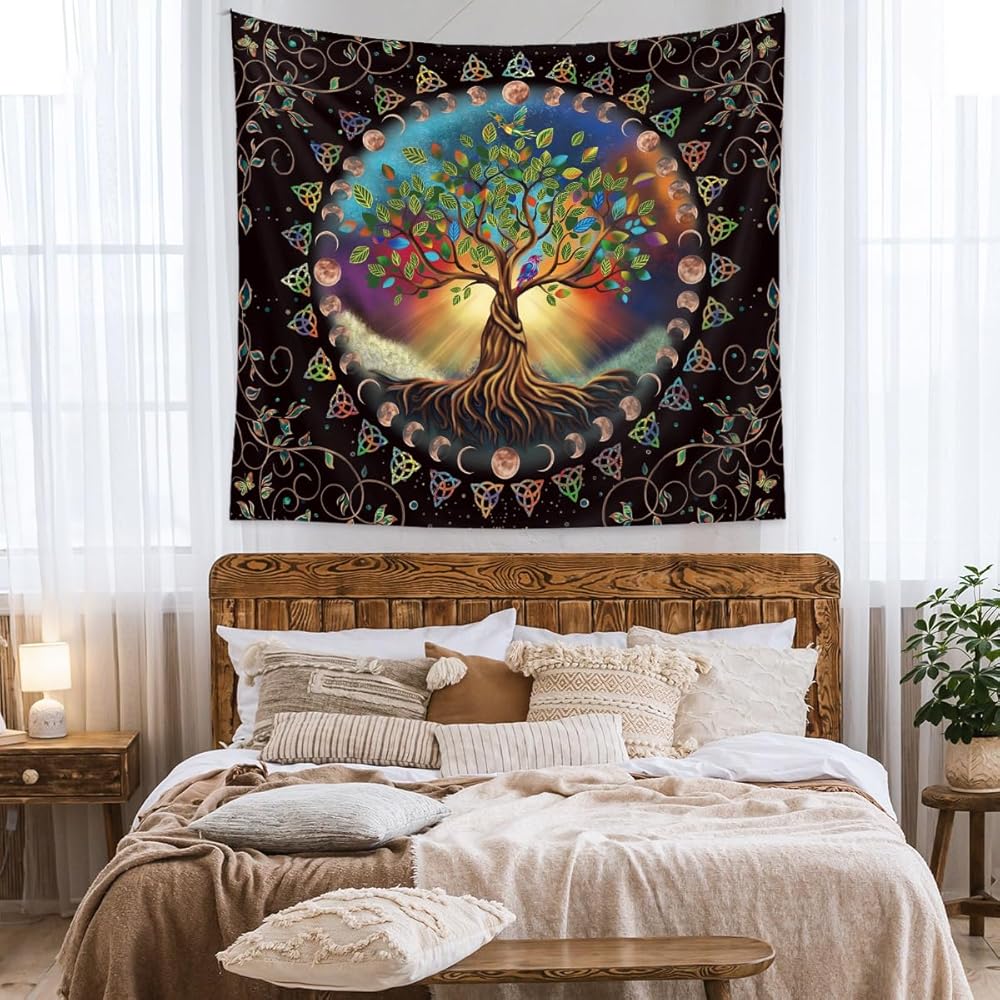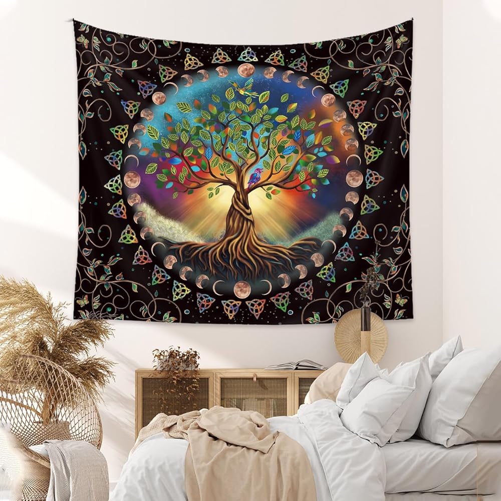 【Aesthetic Decoration】This Tree Of Life Tapestry Has Clear Printing, Bright Colors, Soft And Skin-Friendly Material, And Will Not Fade, It Is Definitely The Best Choice For Your Room And Dormitory. Whether Used In Living Room, Bedroom, Dorm, Yoga Studio, This Tapestry Will Add A Touch Of Comfort And Beauty To Your Room, Filling Your Room With A Mysterious Artistic Sense.