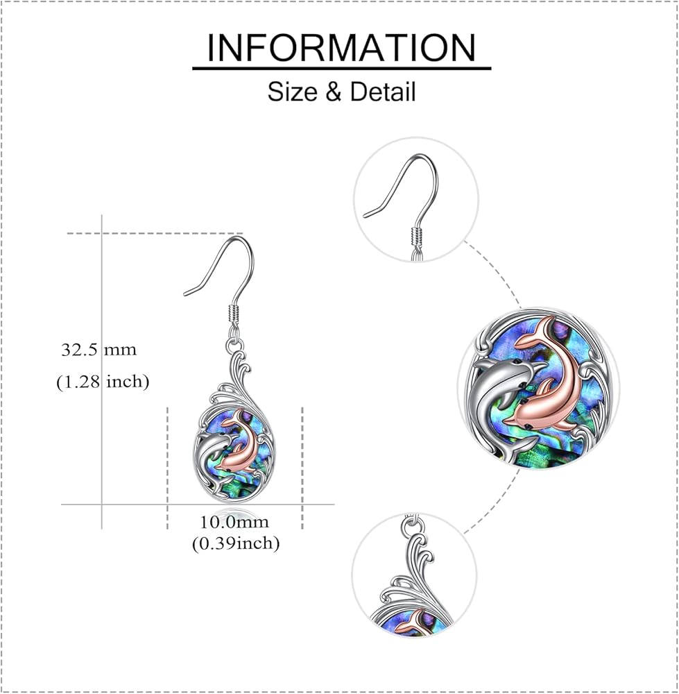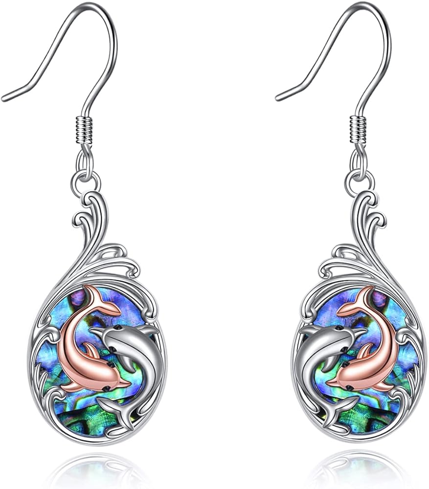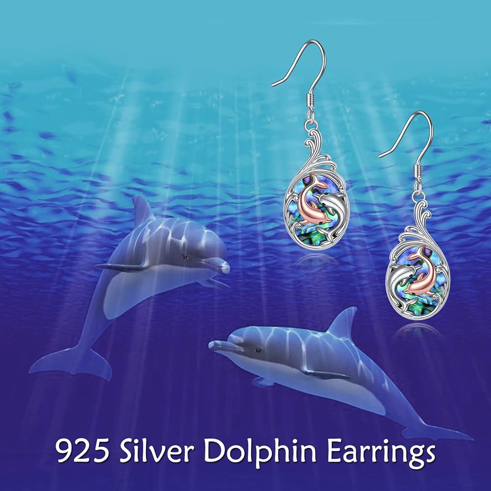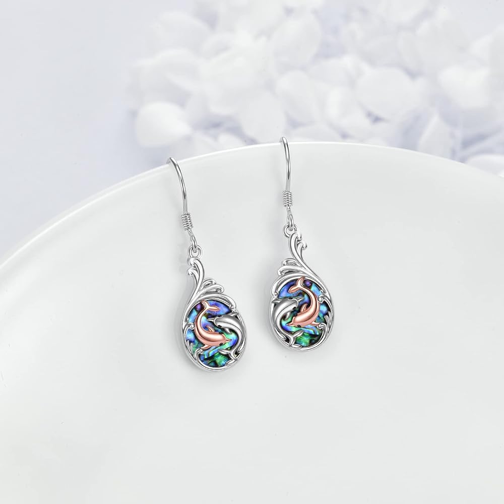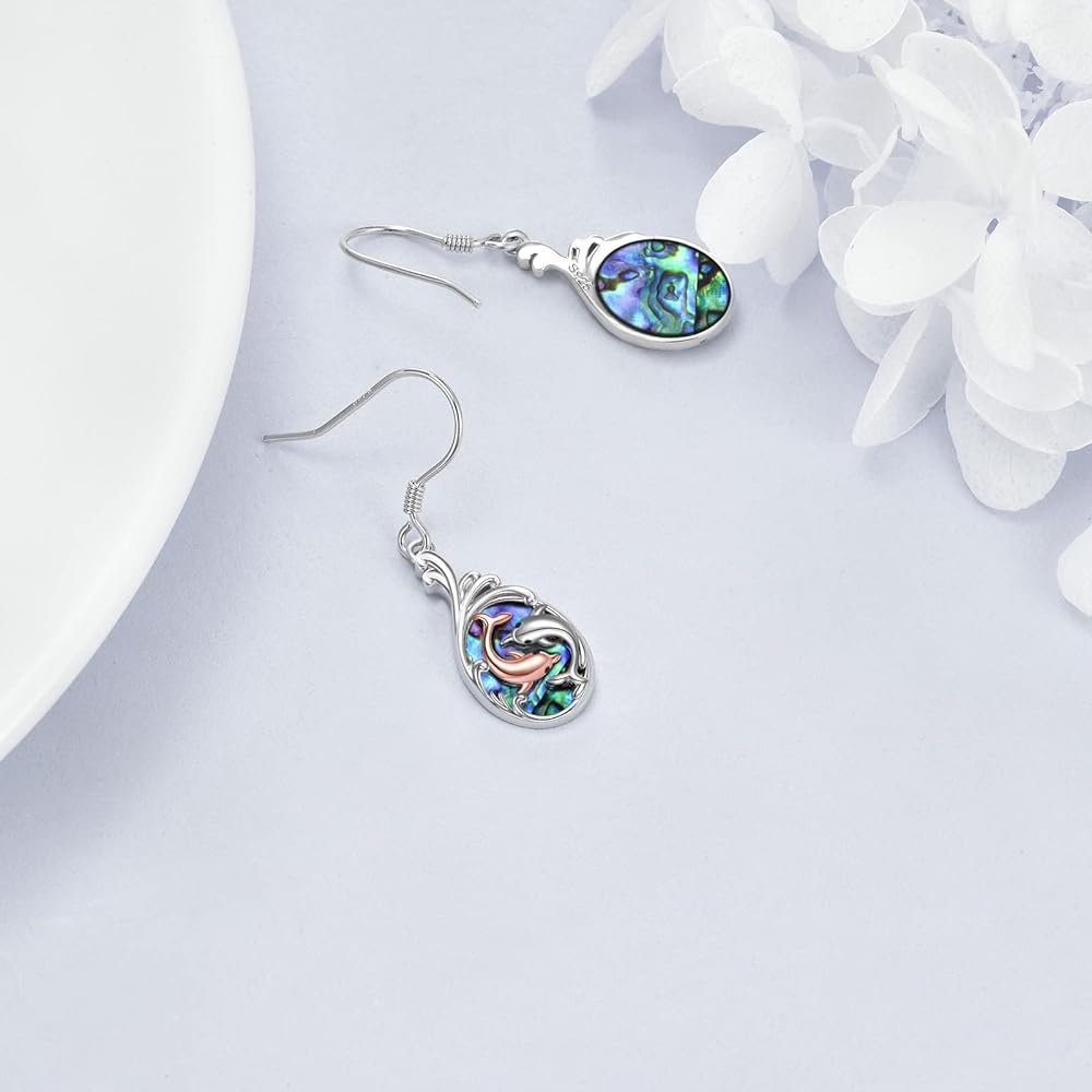Dolphin Earrings Sterling Silver Abalone Shell Dolphin Dangle Drop Earrings Dolphin Jewelry Gifts for Women Daughter