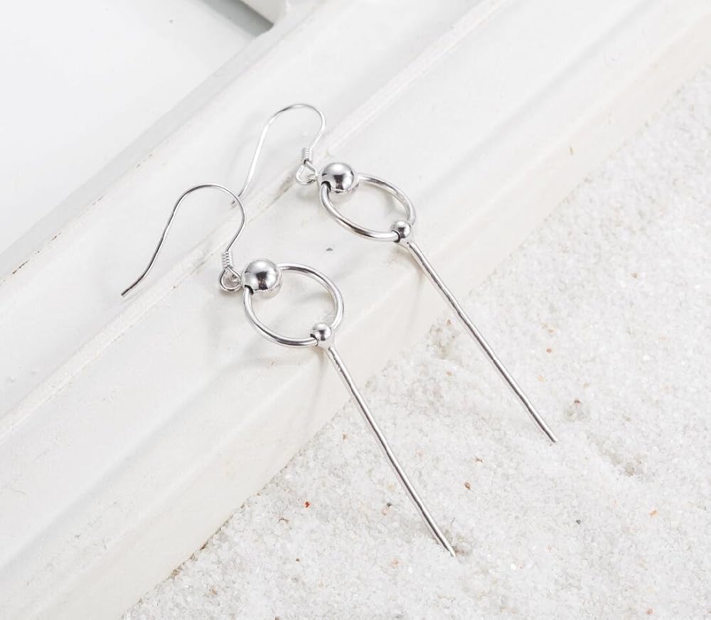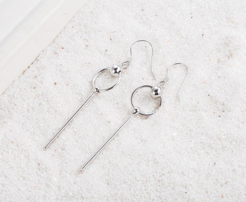 925 حبة من الفضة الاسترليني مع أقراط متدلية على شكل شريط طويل