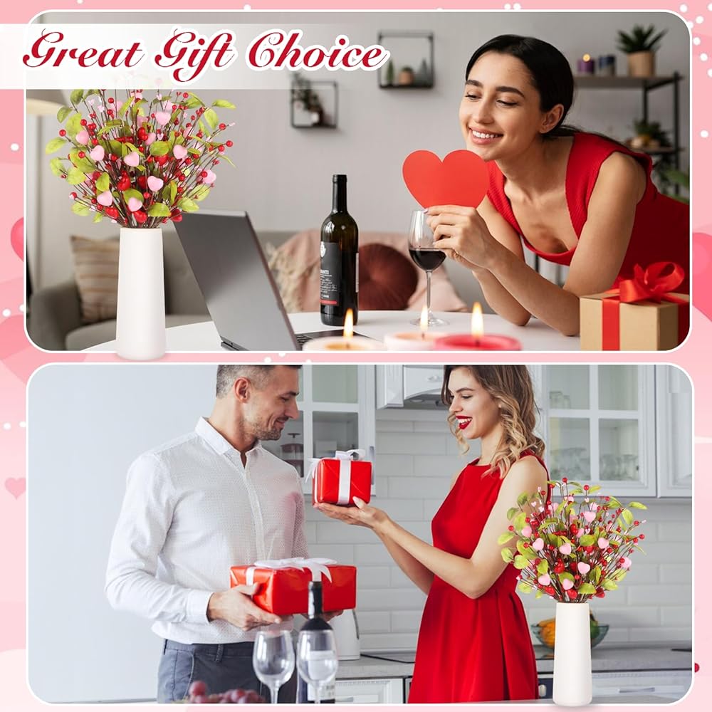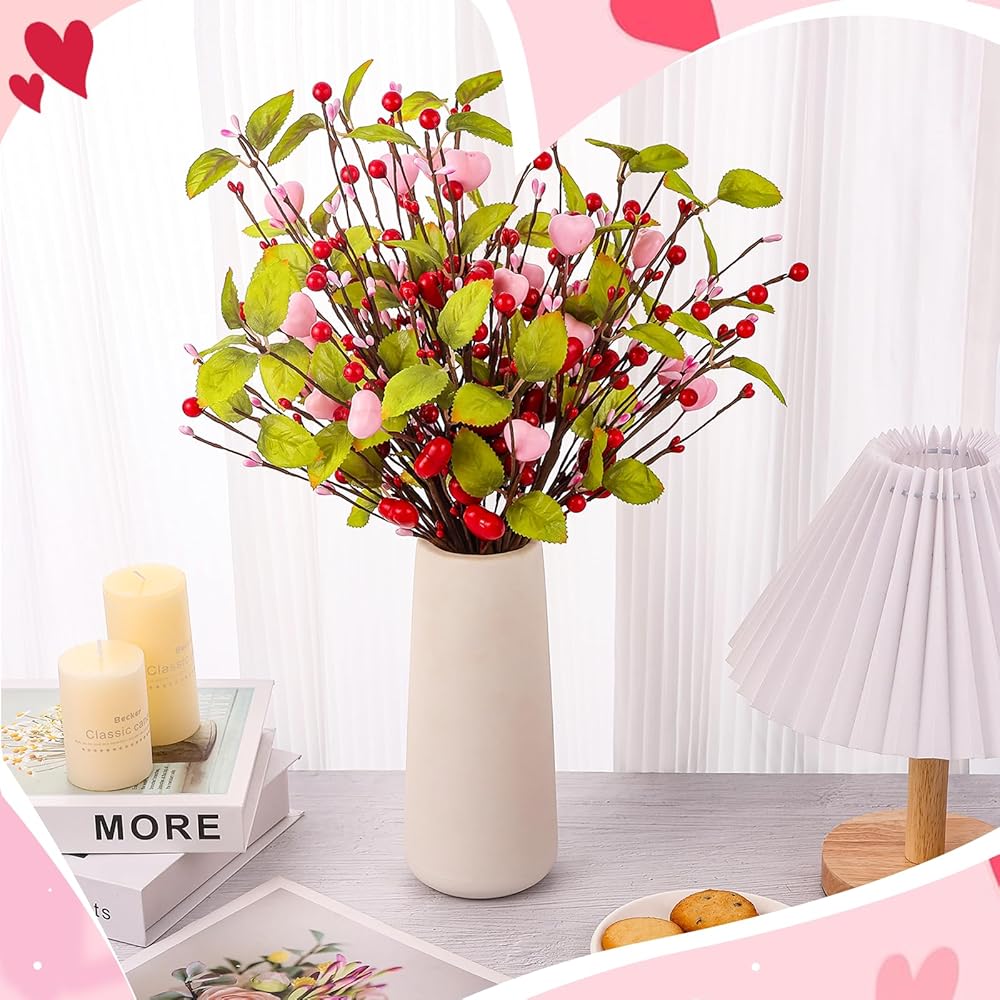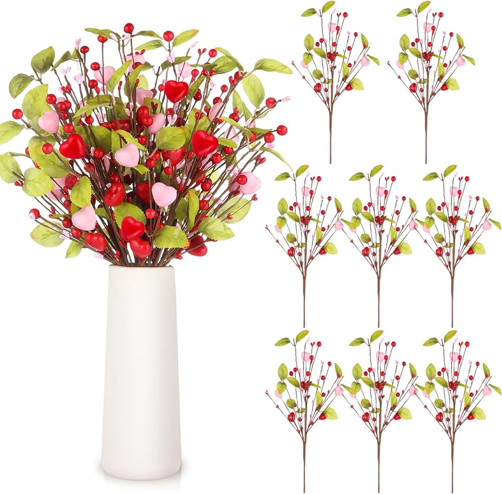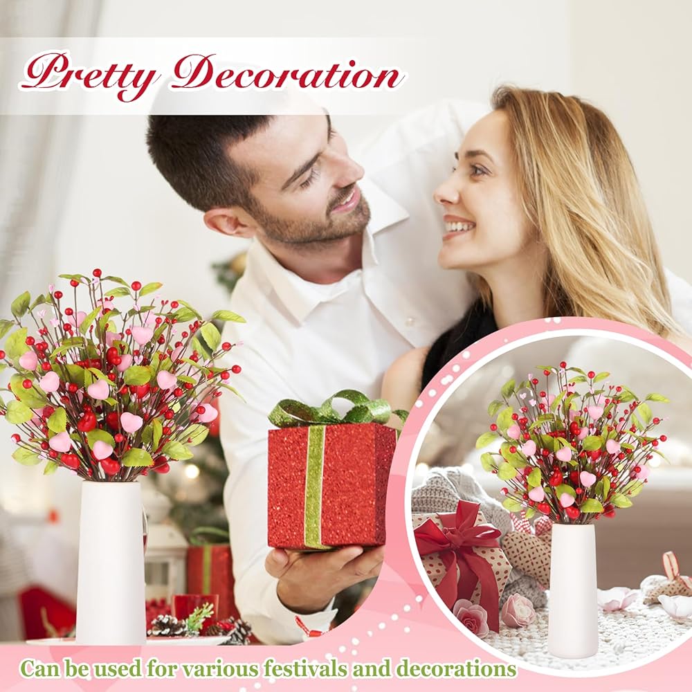 • Add a Romantic Valentine's Day Atmosphere: Add a warm and romantic Valentine's Day atmosphere to your home with our Valentine's Day decorations. Our 9-pack heart-shaped berry branches are designed with pink and red heart shapes, with vibrant green leaves, perfect for expressing love and holiday decorations.